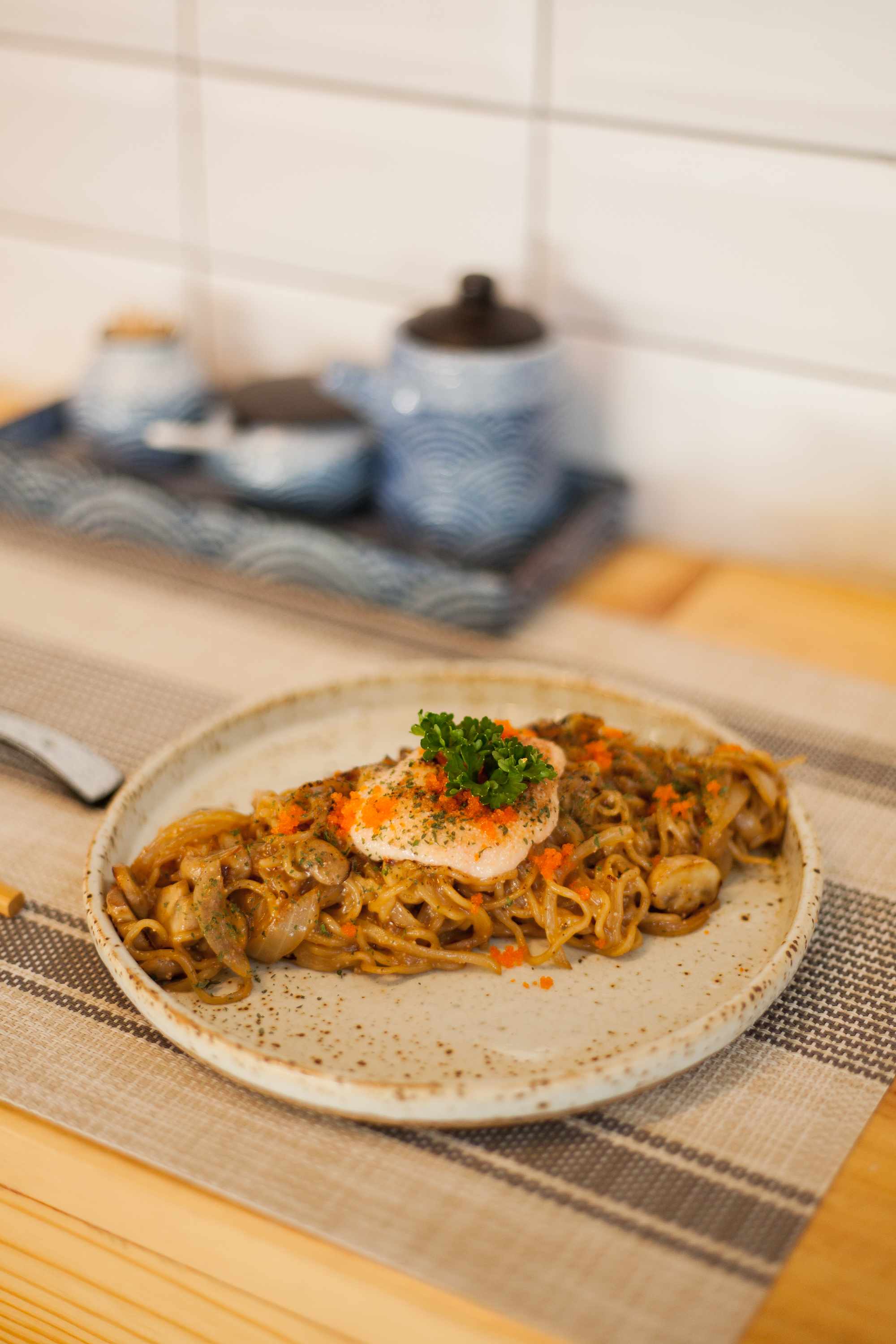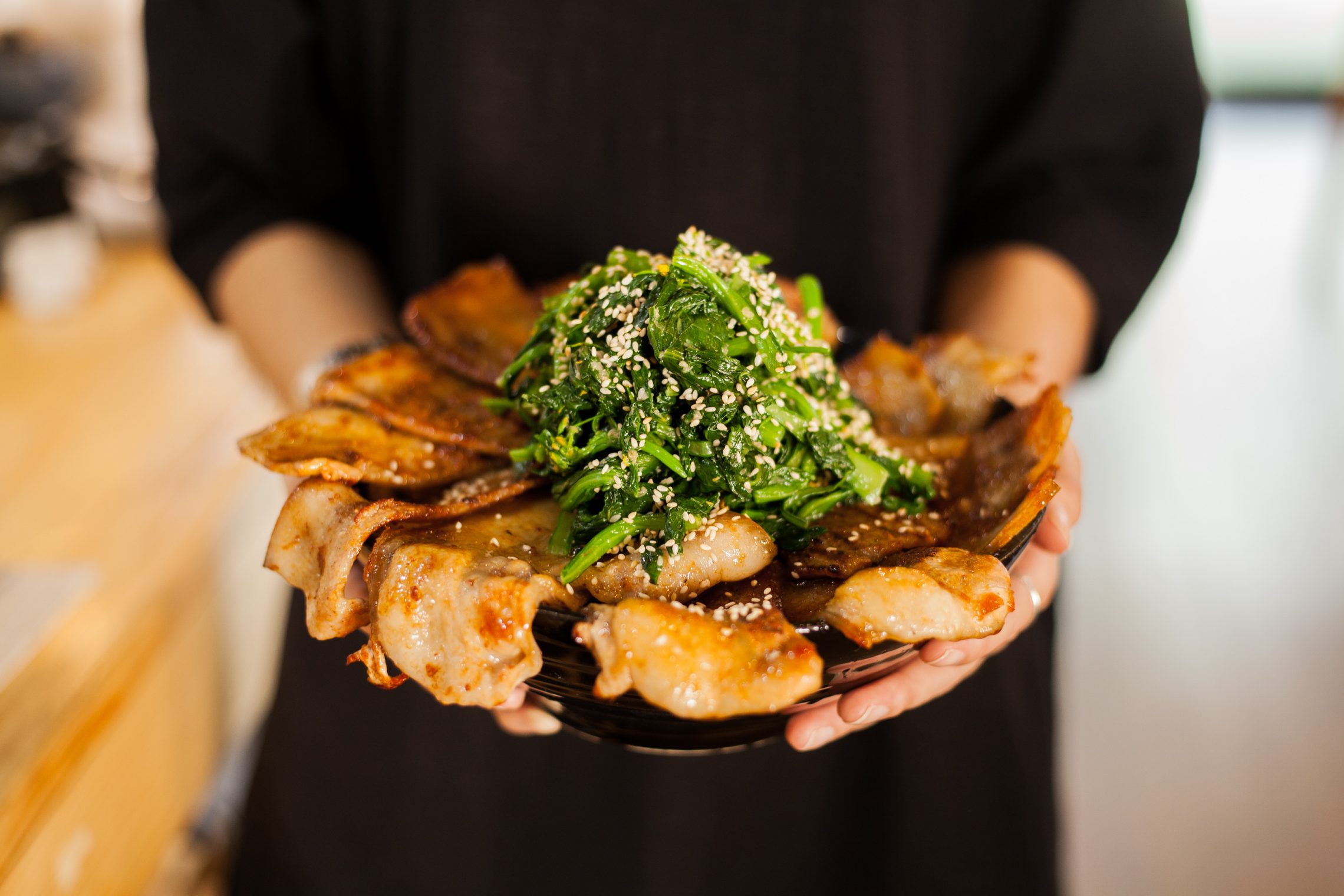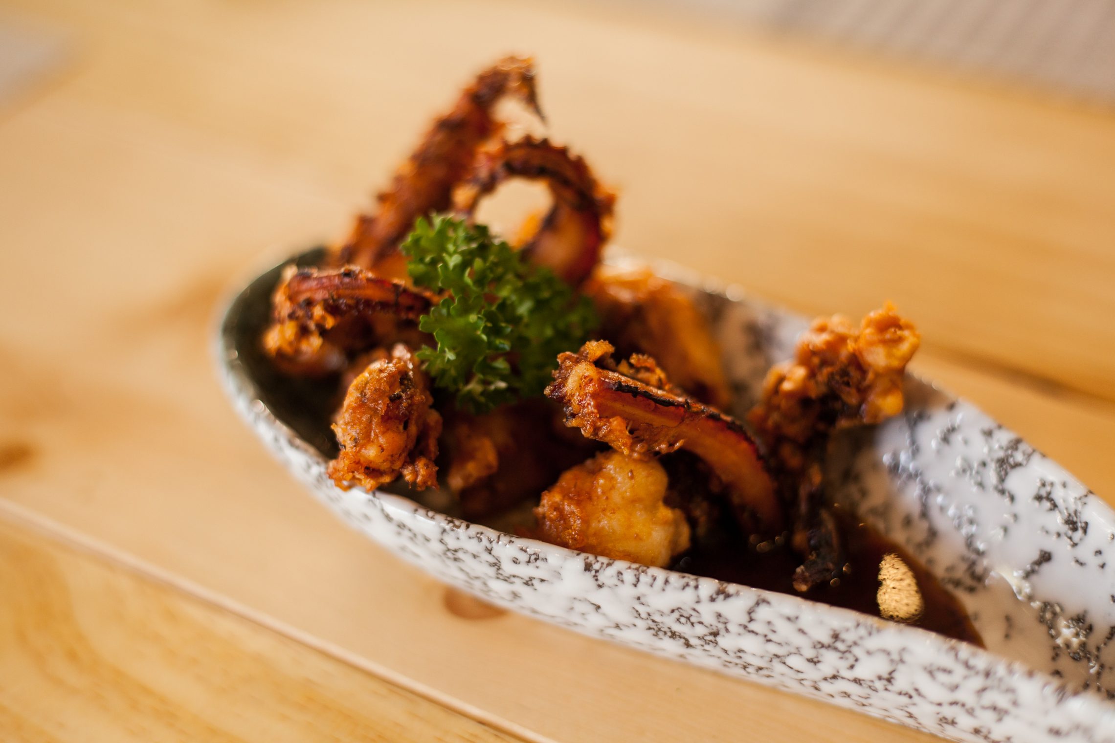 Grilled pork belly with rice is an impressive highlight that is available in a big “XXL” plate full of big chunks of fragrant and crispy pork belly for groups of 3-4 or and also in an “L”-sized serving. Mentaiko ramen features mentaiko cod roe imported from Japan and carefully prepared with a special recipe. The ramen is fried with seasoned cod roe that then coats the noodles. Mushrooms and prawn roe elevate the pleasant taste of this must-try dish. Grilled king salmon teriyaki sauce with rice is also of high quality with rare, soft and oily salmon imported directly from New Zealand.