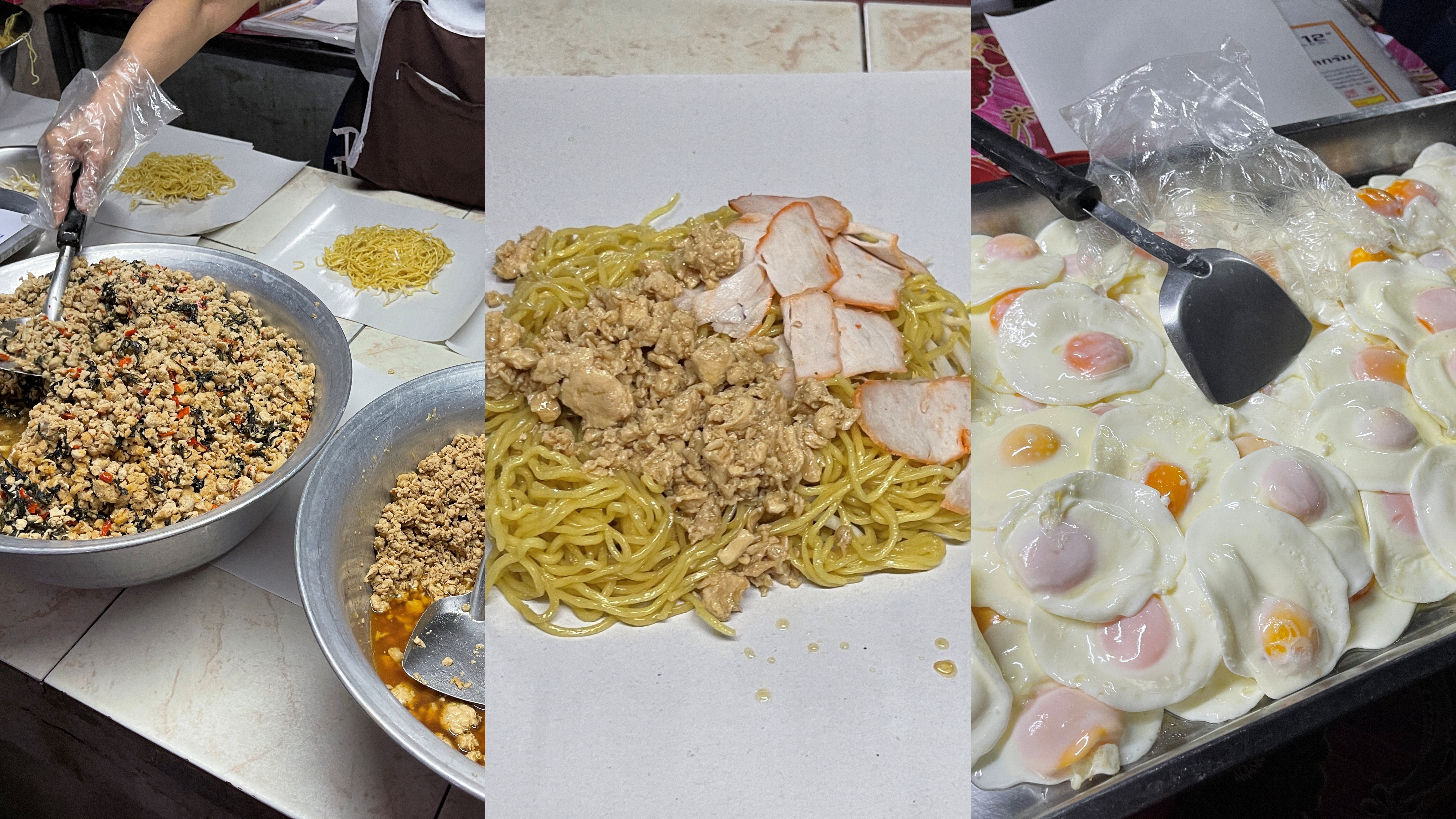 This noodle shop located in Chang Phuek food Market inside the old city, serves up – slightly sweet and oily –fried egg noodles served with several side dishes such as garlic chicken and roasted red pork. They also serve side dishes with rice including the popular rice topped with stir-fried pork and basil. This restaurant was well known amongst the late-night party people in Chiang Mai. Today it is mainly students who come here as it is cheap, serves large portions and importantly open late. The owner is very nice and always welcoming. The prices of dishes start at 20 baht. They are open every day from 12am till 9am.