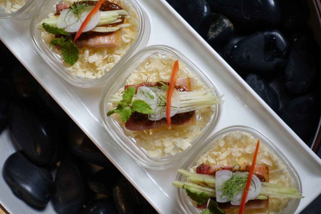 Another standout dish is the Bacon Pla, which features aromatic and tender bacon that is perfectly cooked in a zesty and fragrant pla sauce. Crispy fried rice and finely shredded raw green mango accompany this dish to create a multi-dimensional taste profile that harmoniously blends sour, spicy, sweet, salty, and umami notes.