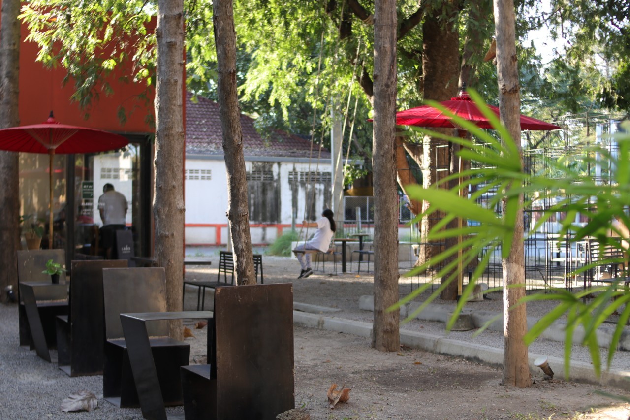 Set in the Wat Gate community, this bare bones designed restaurant is breezy and modern, while being surrounded by green trees.