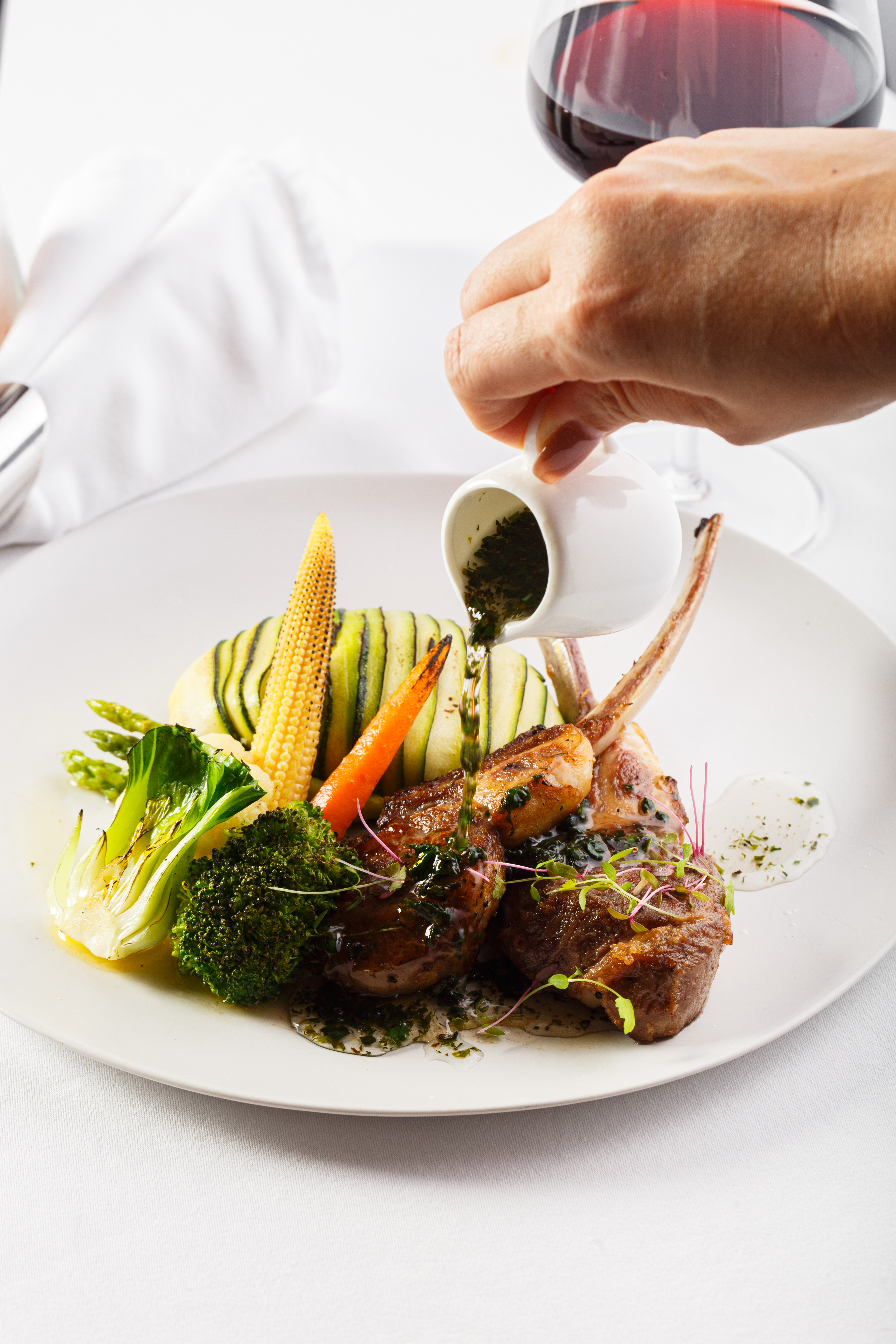 before you are given a choice between two main courses; the salmon steak with Penang sauce or the lamb rack served with couscous.