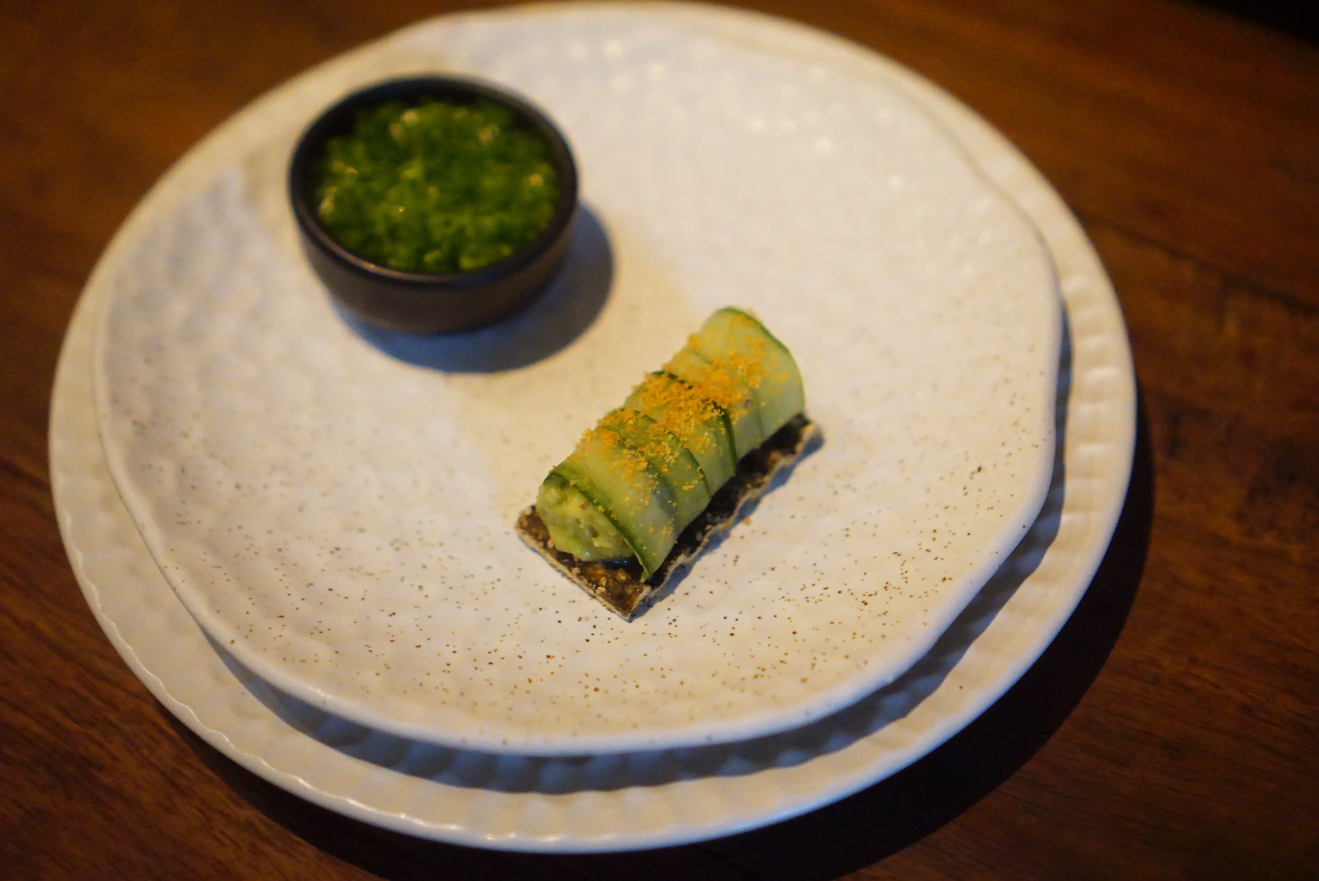 Smorrbred: Chef Nan’s interpretation of the famous Scandinavian sandwich served with pickled mackerel and avocado salad wrapped in a thinly sliced cucumber and topped with sun-dried fish eggs. Simply slather with sour cream and take a bite.