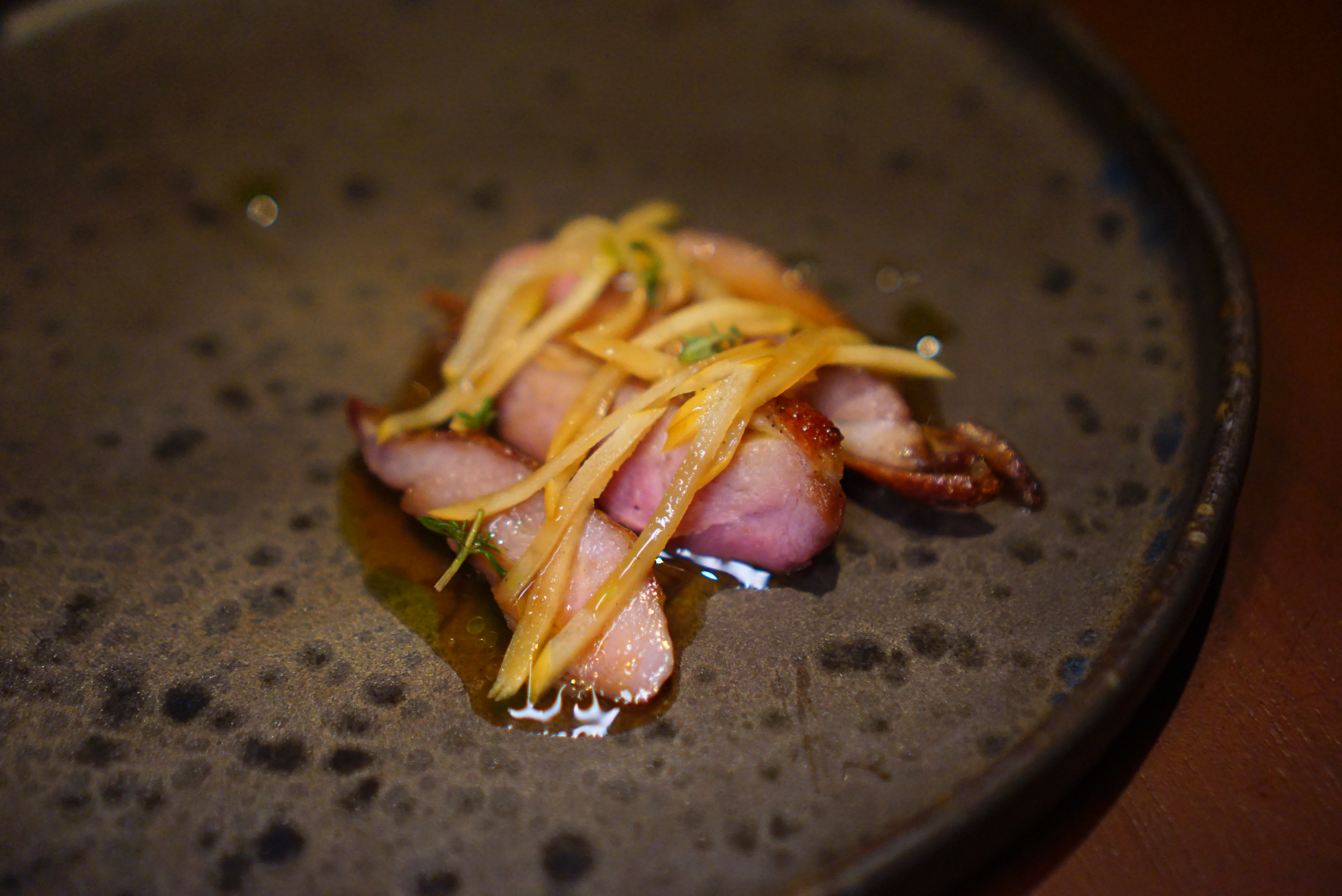 Beef Tongue: Grilled beef tongue and seasonal vegetables slathered in teriyaki sauce and served with tamarillo.