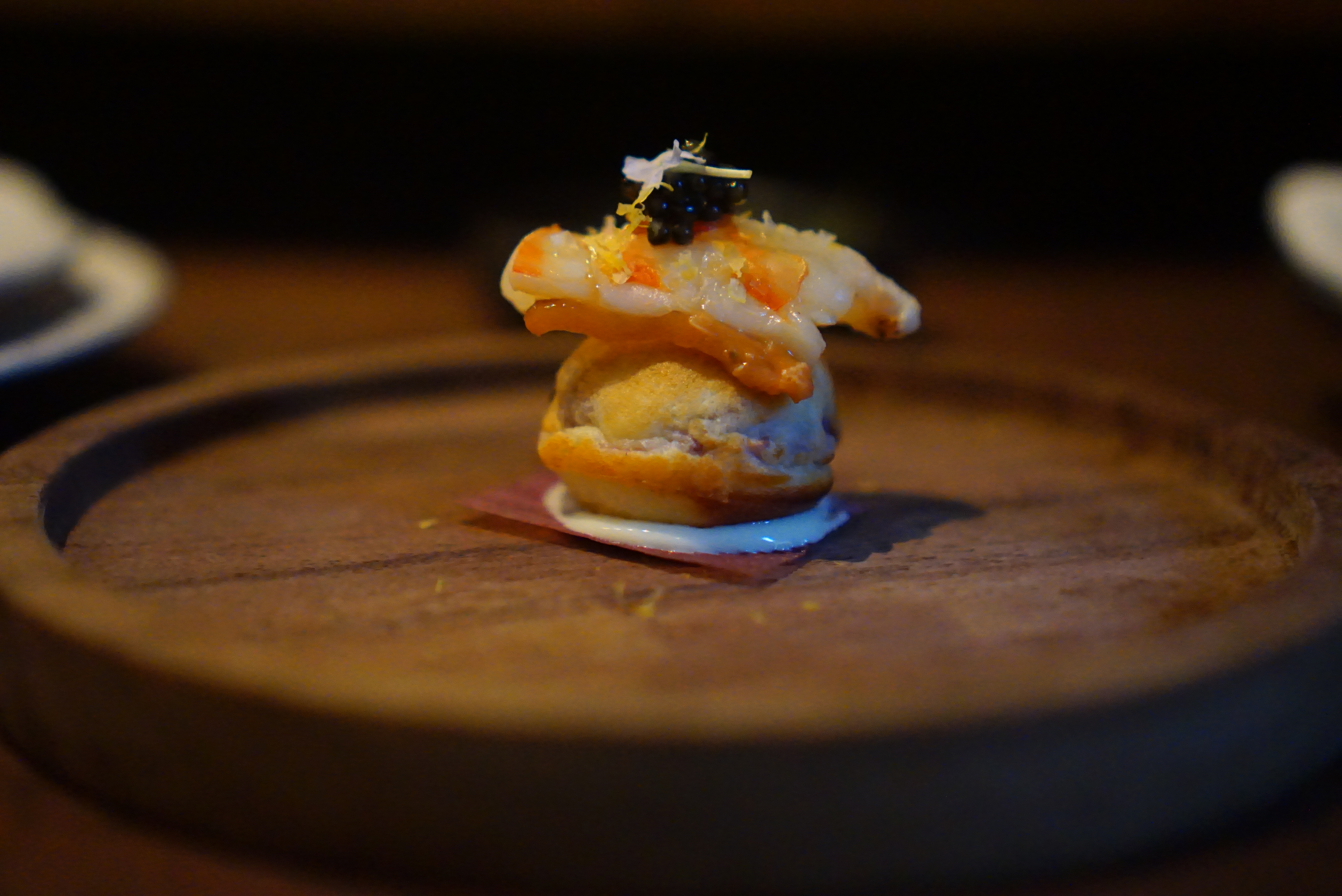 Ebleskiver: Similar to the Japanese takoyaki, this buttermilk ball is filled with corn and topped with fresh prawn from Ranong Province, quick grilled, and topped with Sturgeon caviar cultivated in Hua Hin.