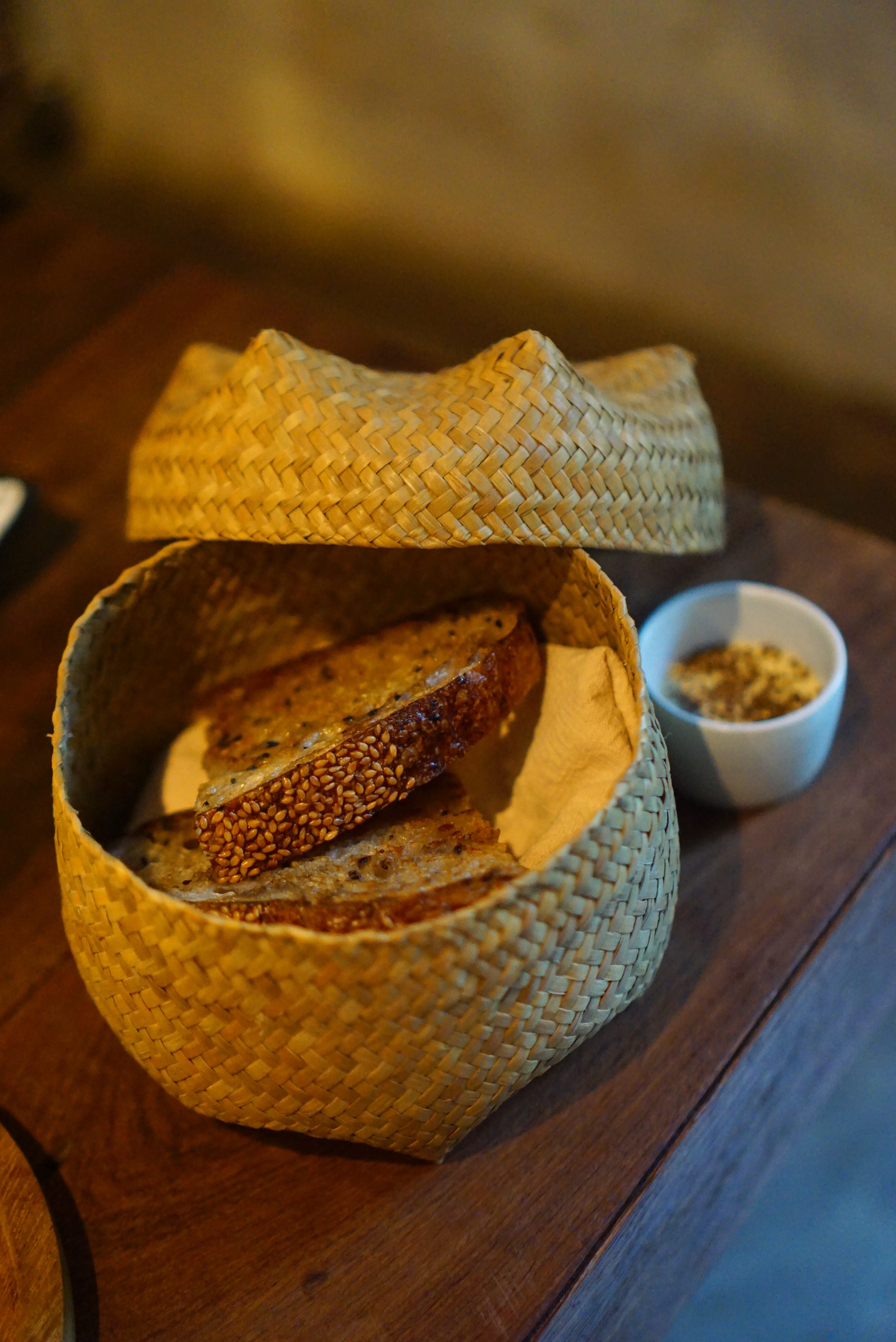 Sourdough: Freshly made natural sour dough is served with cream of crab butter and sesame.