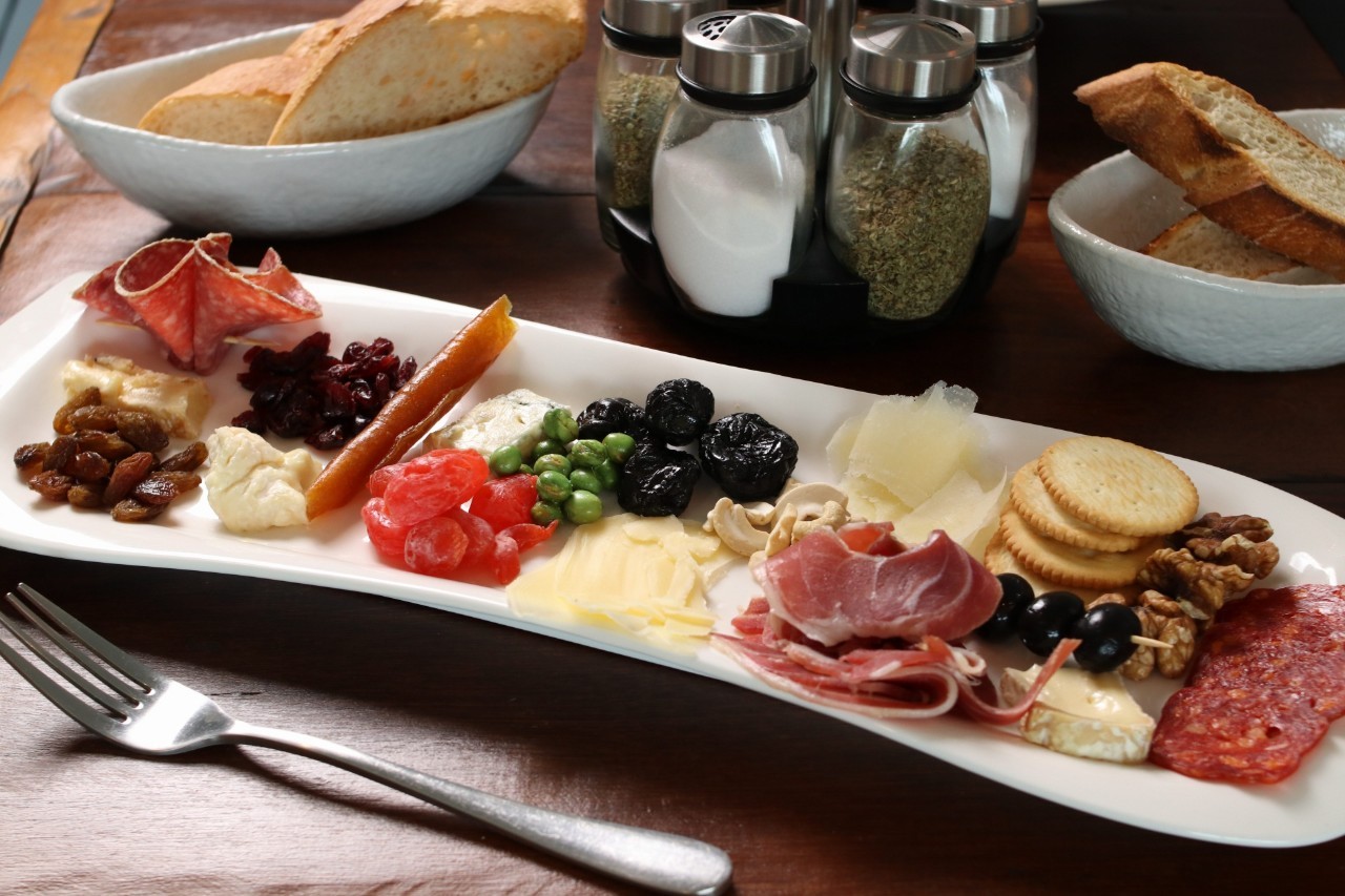The cold cut with a large selection of cheeses and ham from Italy and France.