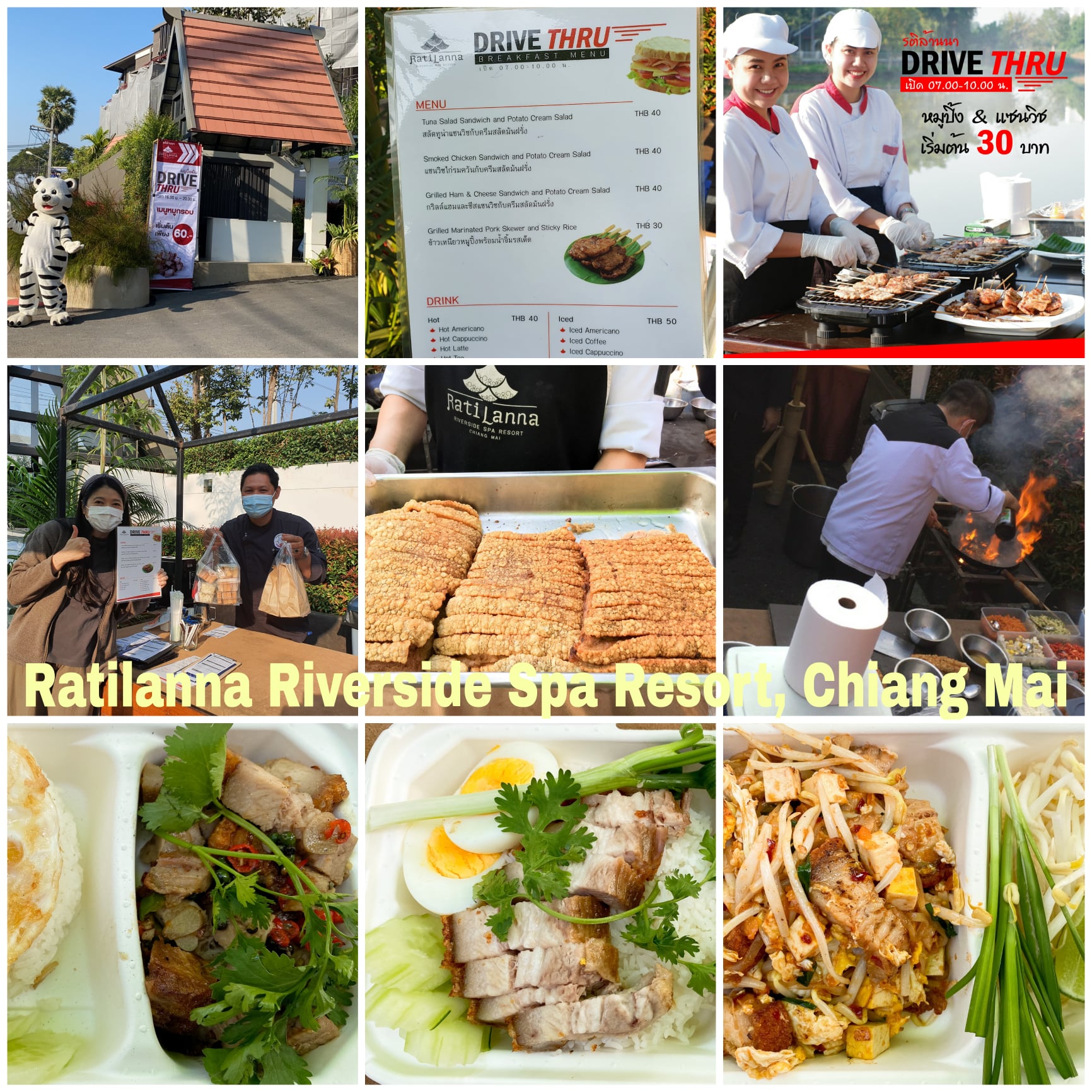Breakfast and dinner drive-thru starting from 30 baht per set.