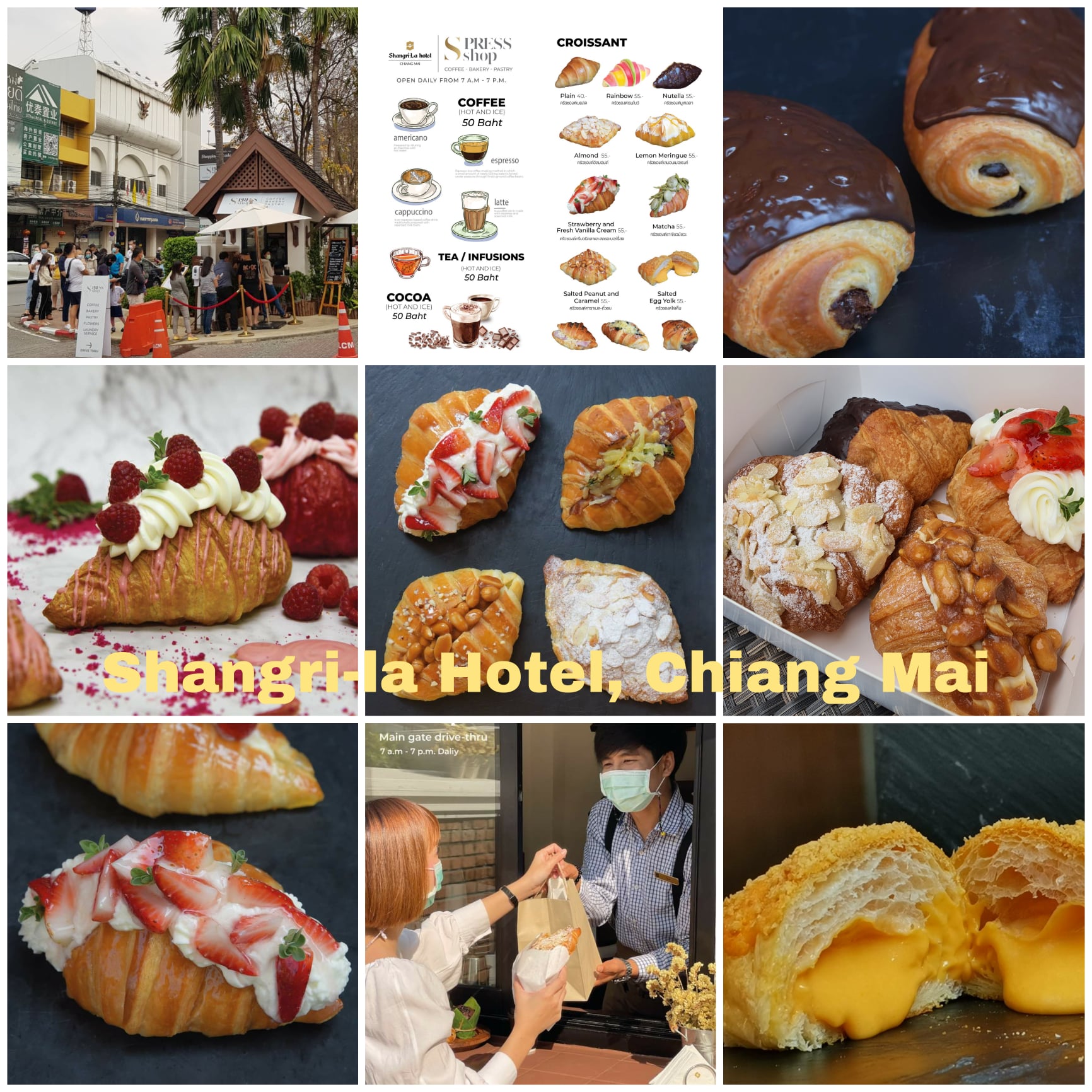 Slashing all prices, the Anantara drive-thru can’t be more accessible to us all! They serve lunch boxes of kurobuta krapao on rice at 79 baht a pop, chasu Japanese braised pork belly on rice with mala sauce and fried bok choi on rice for 99 baht and our absolute favourite, juicy generous chunks of grilled duck on rice for 99 baht. While Anantara’s croissants haven’t quite hit the social media highs of others hotels, we highly recommend you try their savoury croissants; both of the unusual mala and krapao are surprisingly and unexpectedly excellent.