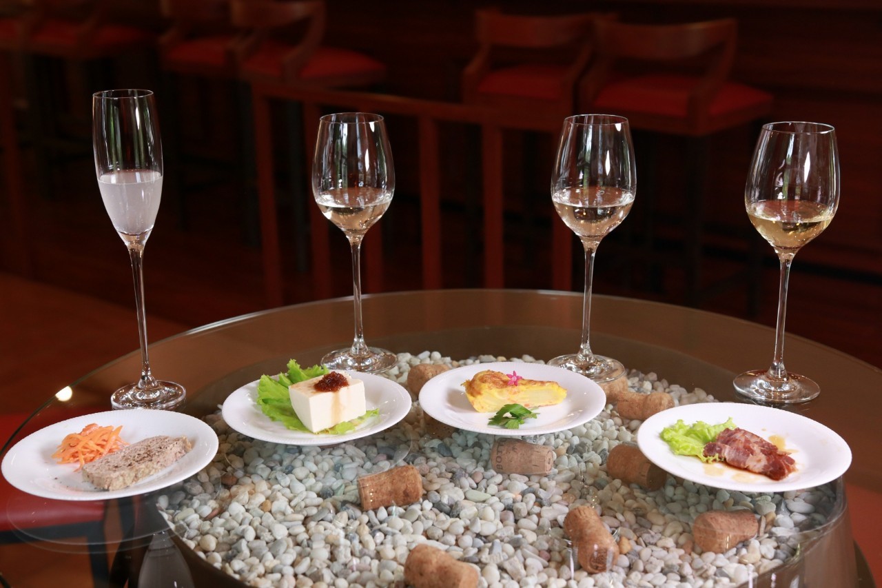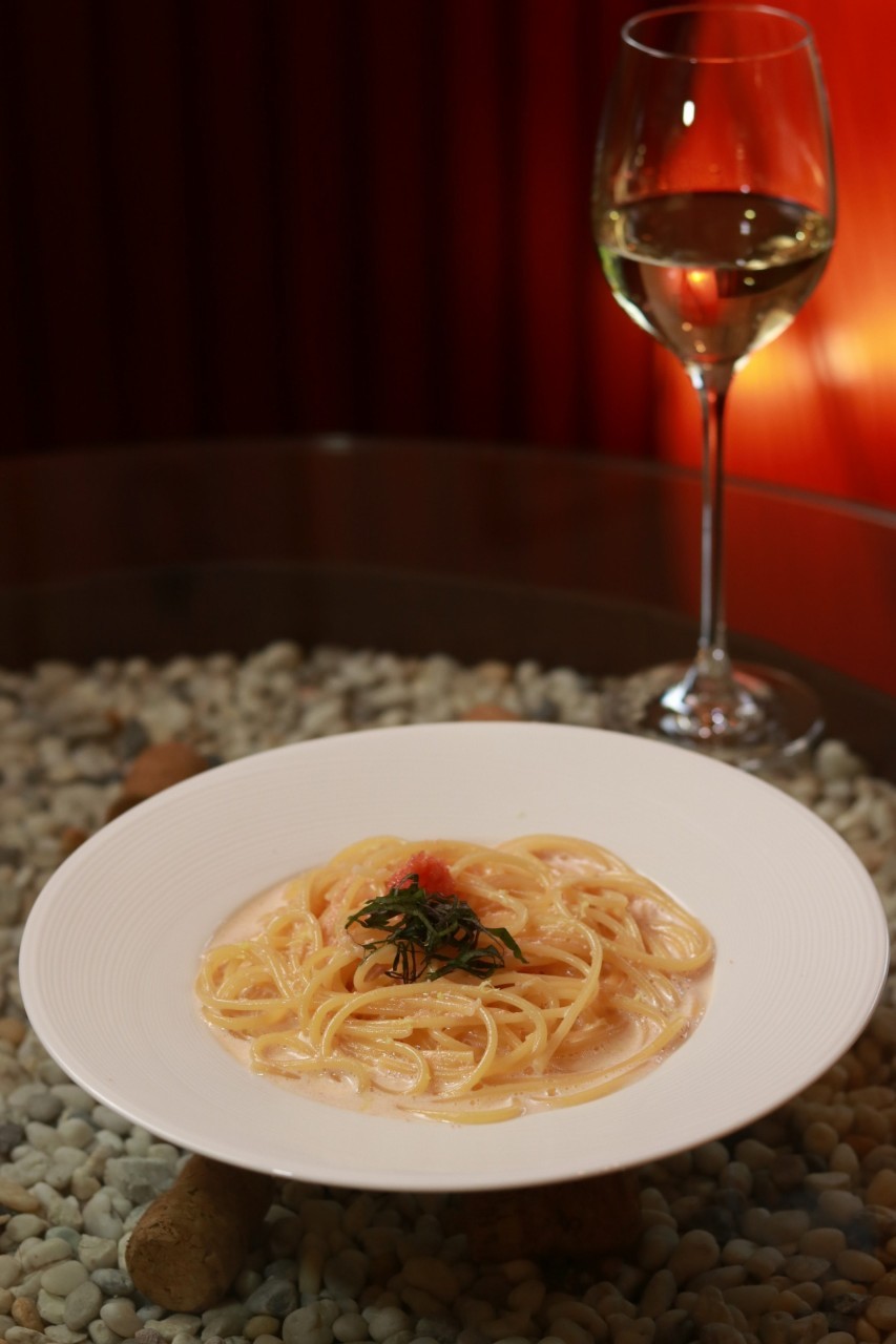 Feel like switching from rice to grapes? Next, you can order a bright Pinot Grigio served with a small plate of roasted prawns with herb and bread crumbs. Or you can go big with a Malbec and a plate of mentaiko cream pasta, a subtle cream pasta with a burst of seasoned and spiced pollack roe topping.