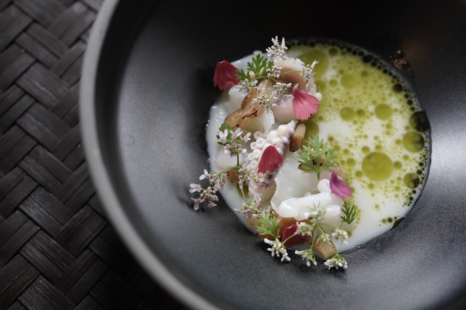 • SQUIDLightly poached squid, pickled mushroom, coconut milk