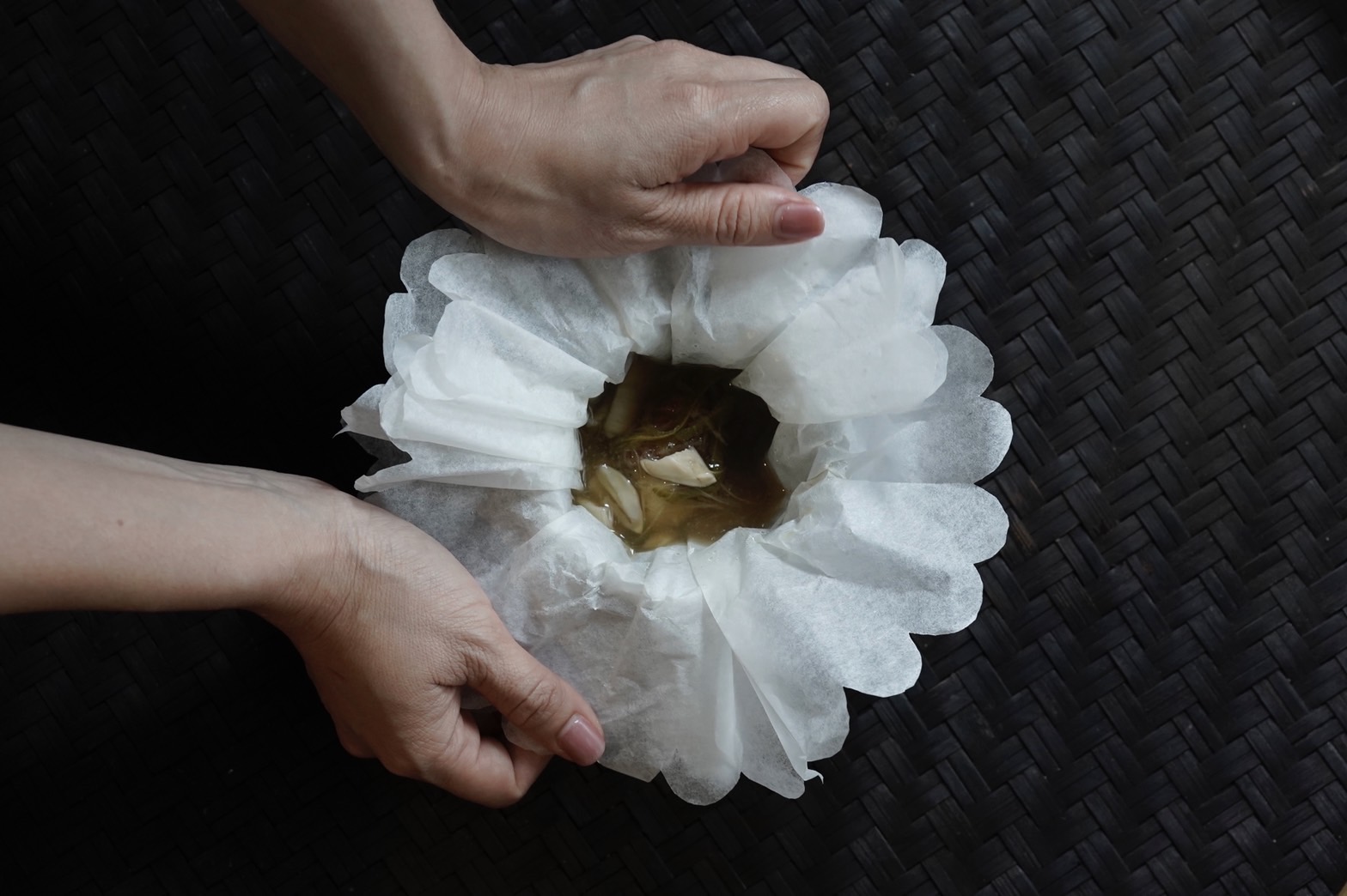 Each week another jungle mushroom will be featured with dashi soup served with dried fish from Doi Tao District. Ginger is gently sliced and served with steamed fish, topped with a local leaf which offers a slightly tart flavour.