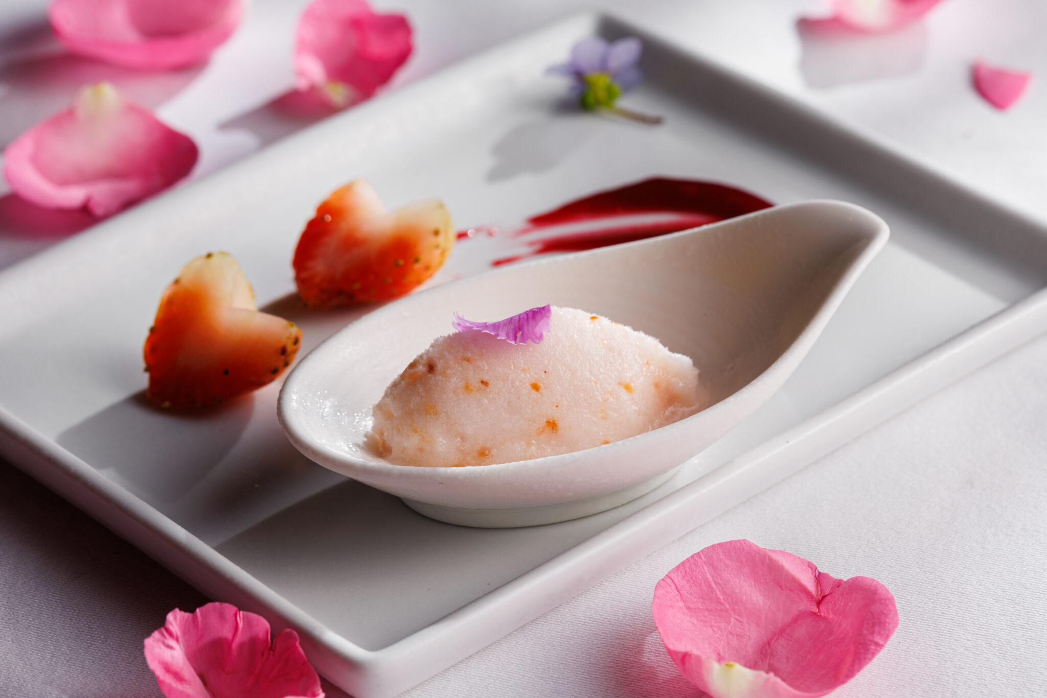 The palate is then cleansed by rose and lychee sorbet, a sweet and sour offering to get you ready for the next course.