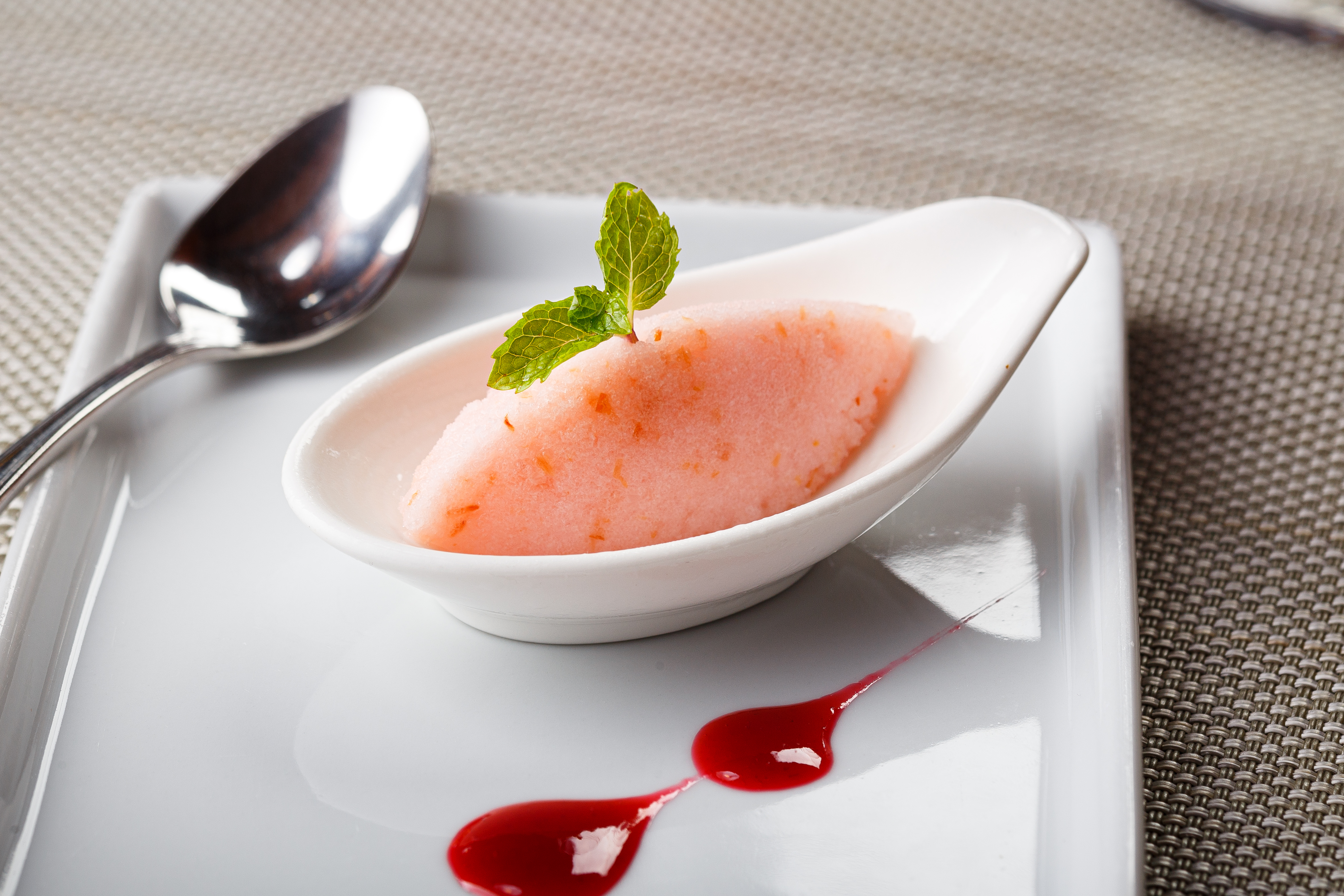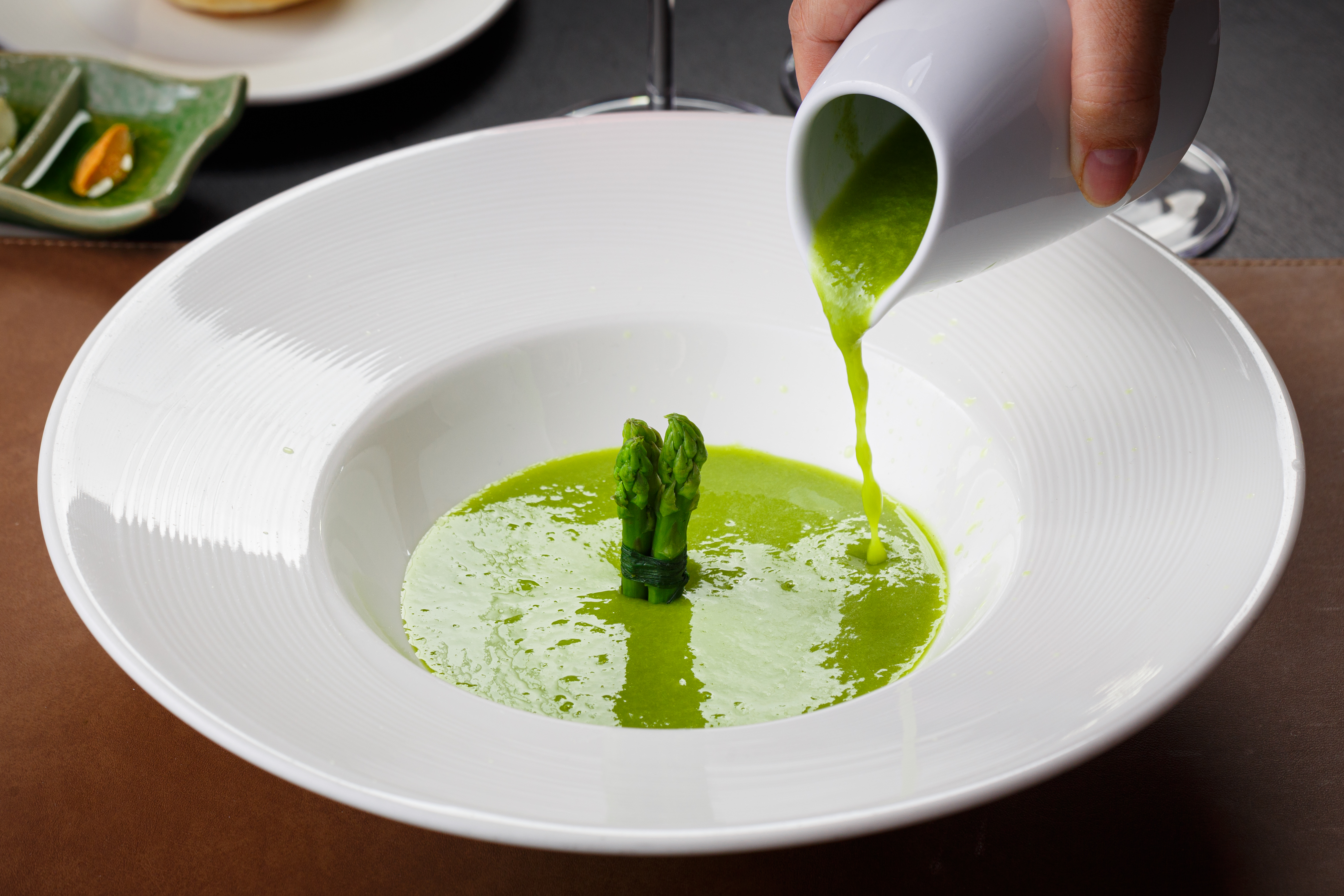 A refreshing asparagus cream soup follows, before you cleanse your palate with a rose and lychee sorbet that will leave your palate refreshed