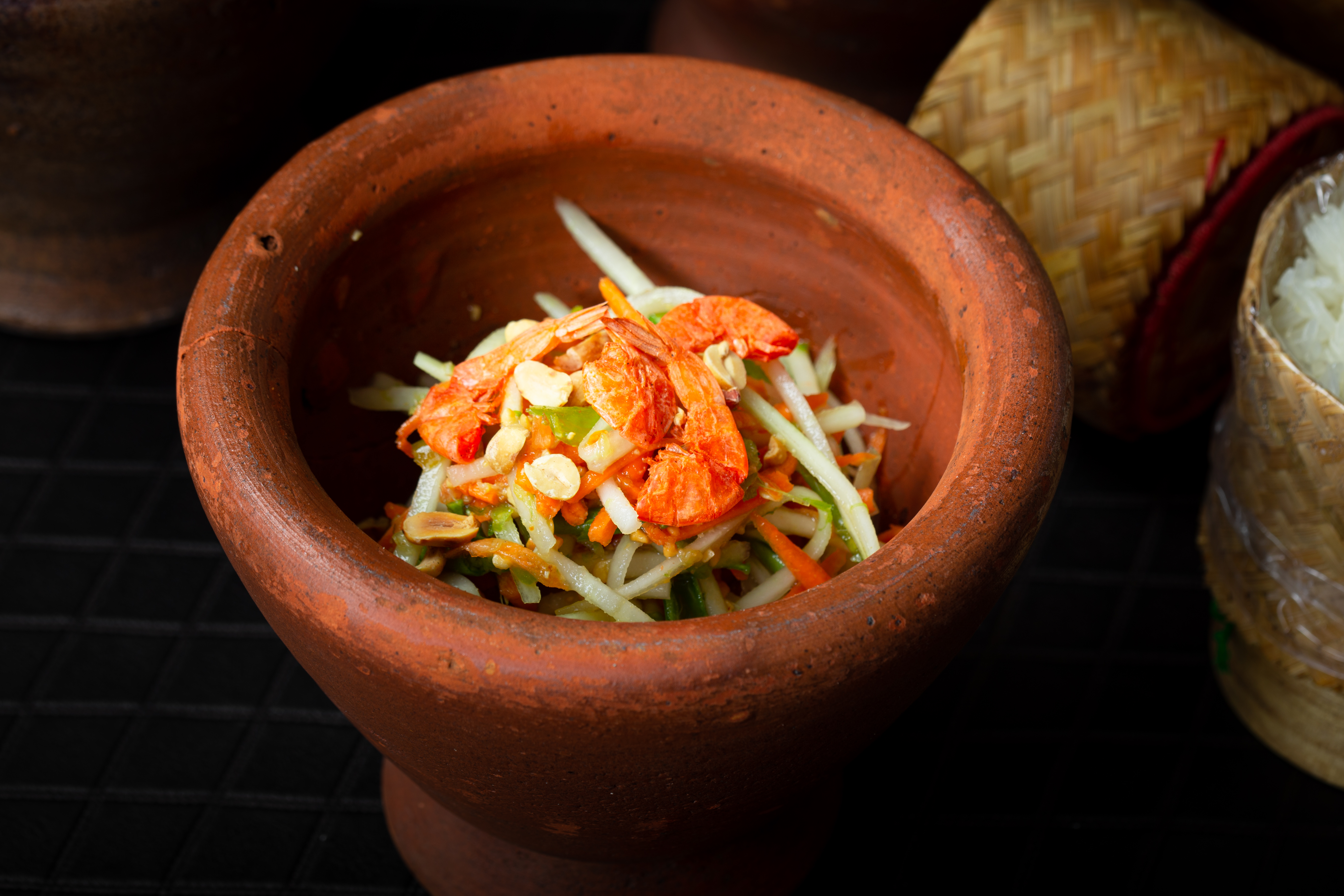 Som tum is a national dish, found on most kitchen and restaurant tables around the country. We each have our favourite flavours and tastes for our perfect som tum, depending on how sour, sweet, salt, fishy, and spicy our palate is. Voted by Lonely Planet in 2022 as one of the top ten best food experiences to be had in the world, som tum is world renown