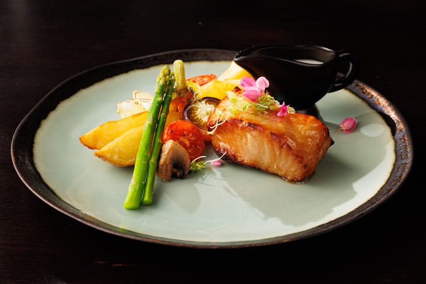 A tenderly cooked fillet of marinated snowfish melts in your mouth and is served with baked potatoes and grilled vegetables. A delicate cream of lemon source elevates the flavours of the fish. Or for a heartier dish, order the grilled veal Angus beef slathered in a delicious red wine sauce.