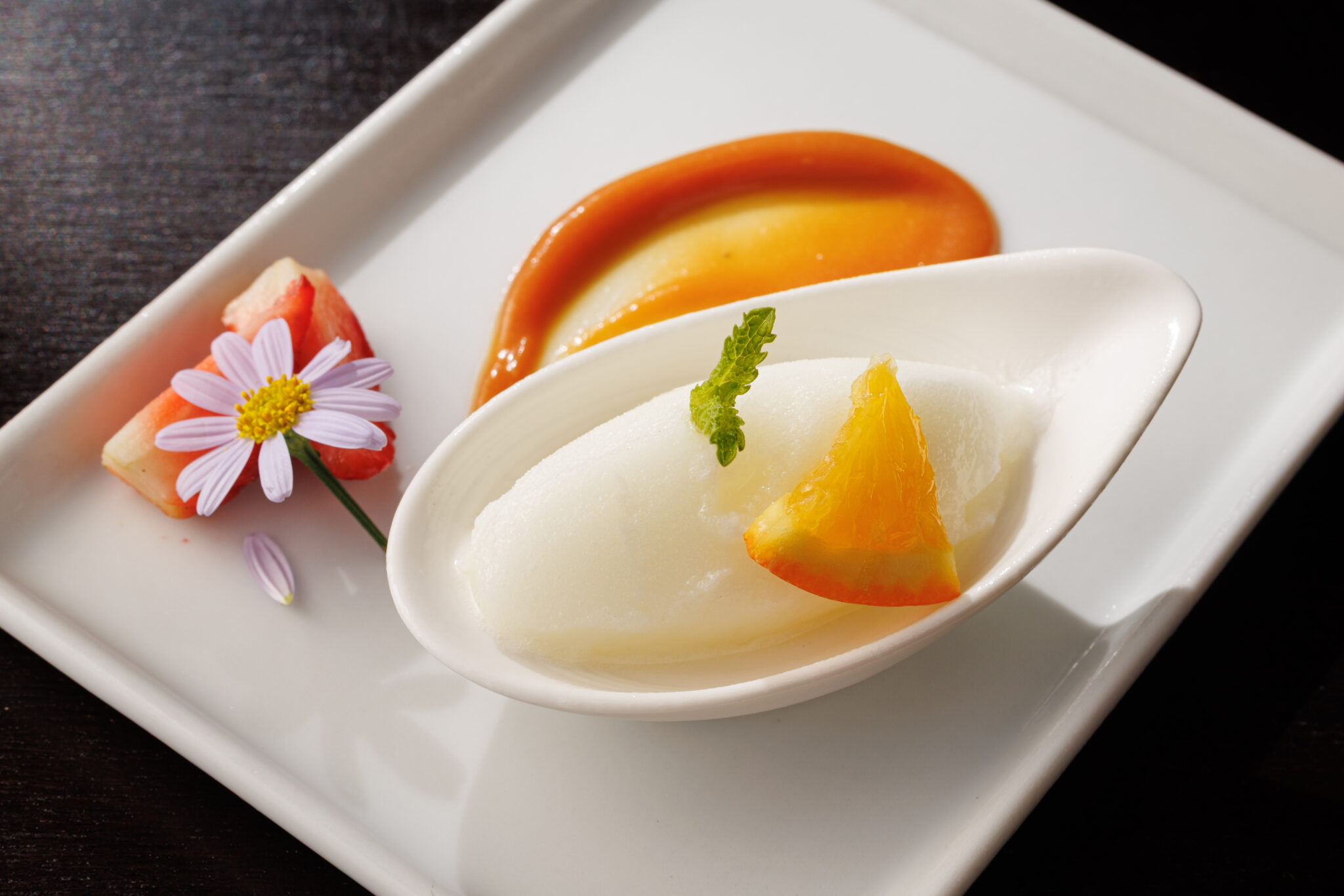 A refreshing yuzu sorbet cleanses your palate before Palette presents you with the next dish.