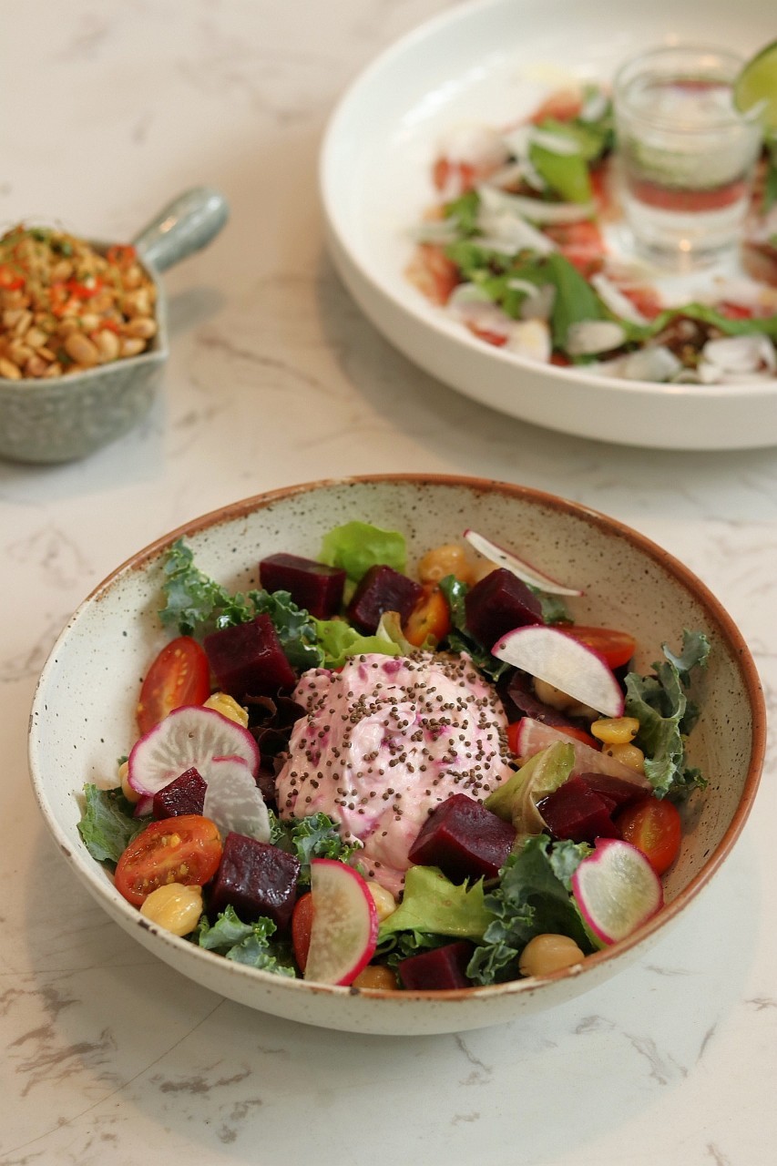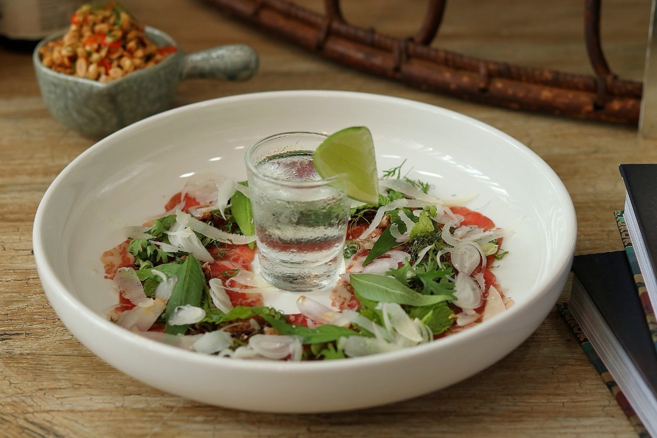 Each chef, with their decades of experience, have sourced some of the most exciting and ethical suppliers in the country for fresh as well as processed products to not just serve, but also sell in the shop which is featured across the restaurant. There are great starters from which to choose, and we started off with a healthy beetroot salad with chickpeas, rocket salad and cherry tomatoes which comes with a refreshing yogurt dressing. We also ordered a carpaccio alla Lanna, where slithers of thinly sliced tenderloin is mixed in Northern larb herbs and served with a vigorous shot of vodka. Other starters to try are the salted fish arancini, the super tasty and perfectly baked Peppina verde garlic bread with extra virgin olive oil and the deliciously tender and deeply infused flavours of the turmeric squid served with Sriracha sauce.