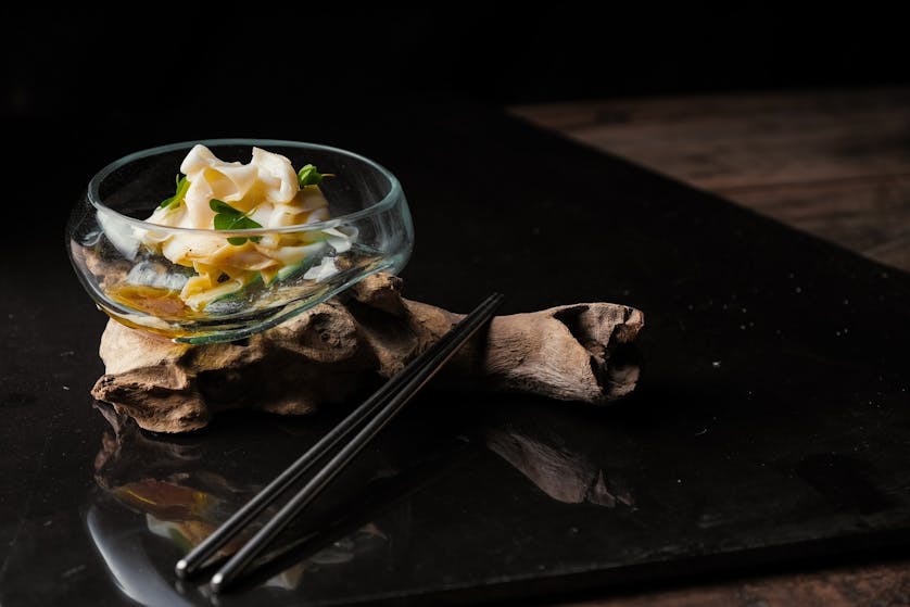 Hard to describe, this fettuccine is likely unlike any you have ever tried before. Freshly made pasta is served cold and each bite bursts with spice, sweetness, savoury and a hint of acid.