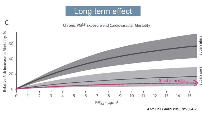 “When it comes to long term effects of air pollution it is all about accumulation. You can see this slide of an ultra sound which shows the thickness of neck arterial walls. In the slide from a community with an average of only three or 4 ug/m3, very clean air, you can see absolutely no change to the thickness over time. But a slight increase to just 7ug/m3 and you can see the increased thickness quite clearly. This is why our average life expectancy if we don’t mitigate air pollution risks with masks or air purifiers is lower than it should be. Here in Chiang Mai on average we have 2-4 years less to live. The rest of Thailand sits at around one year. This is why we need to warn the public and educate people and hope for a government that has the will and commitment to solve this problem.”
