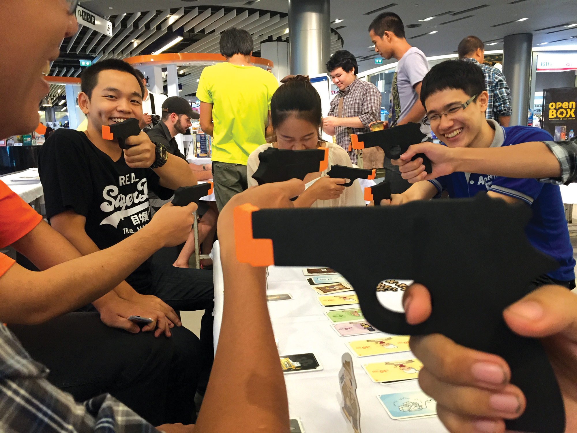 Stuart took me on a tour of all available board game venues in Chiang Mai for anyone, at any level. His own club at Payap has grown so much it now accepts visitors, with people of all nationalities coming down to the school every first and third Tuesday of the month during term time. Described as the nexus of gaming in Chiang Mai, Payap also holds a Game Day every last Friday of the month, 11am to 8pm, with over 50 visitors at any time. “I once was playing a game with players from Thailand, Nepal, Russia, Korea, Japan, England and America,” said Stuart after he placed his pile of cards on the table. “Games really bring people together. It’s a ball!”