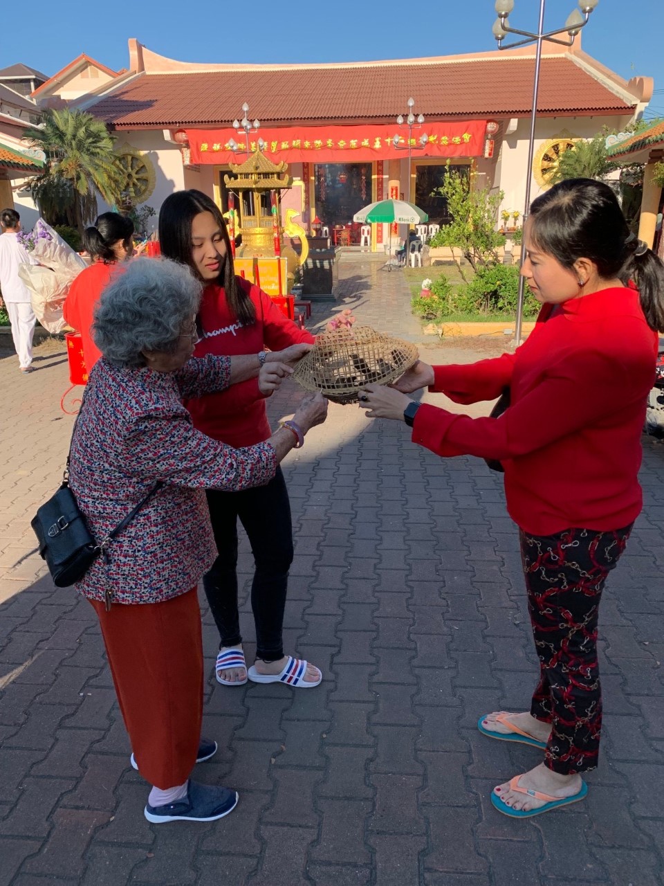 Then it is time to dig into the breakfast provided by the temple, where we are joined by many other families, catching up on news and gossip.