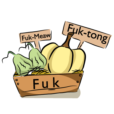 This is a common word that you may all have heard. When you first hear this word, you know what you are thinking right? It sounds naughtier when it is used in the word fuktong and fukmeaw because it can mean fuck the person called ‘Tong’ and ‘Meaw’. Basically, fuk in Thai refers to any kind of gourd or squash. Fuktong and fukmeaw are a specific gourd which are pumpkin and chayote respectively. The funniest one is fukmee which in Thai could mean something like ‘having enough gourd’. But don’t laugh too much if you know someone with this name.