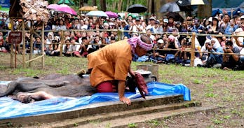 Pu Sae Ya Sae is an annual festival held in Mae Hia, just south of the city in the foothills of Doi Suthep-Pui, where a buffalo is sacrificed and eaten—raw—by a