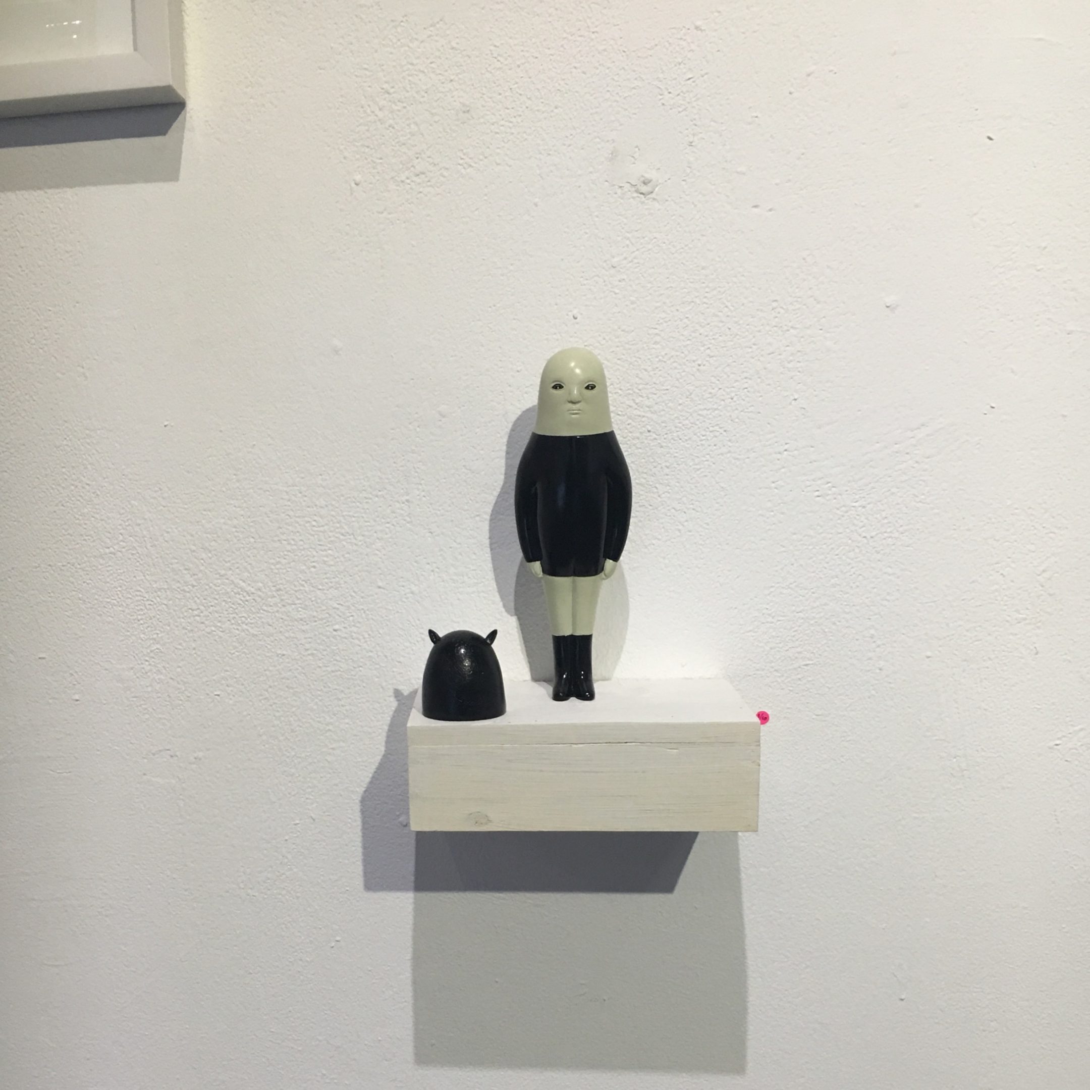 In his exhibition, Thepmetha develops various scenes. Metha, a reoccurring character in each of these scenes, is a young man that explores his sexual fantasy and deep subconscious attractions for all genders. Metha encounters a number of experiences that represent Thepmetha’s real life struggles, explorations and feelings being bisexual. Throughout the exhibit, the masked Metha hides his bisexuality under a balaclava to escape the ridicule from society; however, in many of the pieces, you see Metha without his mask, showing the release of his true inner beauty as he pursues his sexual fantasies.