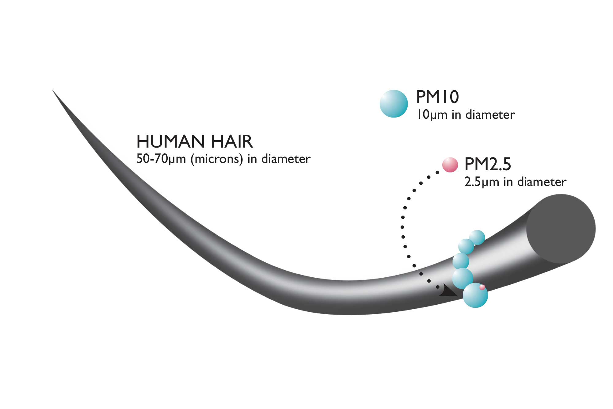 The problem with pm2.5 is that the particles are so small that they can penetrate deep into the lungs and even enter the bloodstream unfiltered. Roughly 20 pm2.5 particles can fit across the width of one human hair, compared to just five pm10 particles. According to a study by the European Study of Cohorts for Air Pollution Effects of over 300,000 people, every 5μg/m3 increase in pm2.5 increases the risk of lung cancer by an average of 18% over a 12.8 year period.