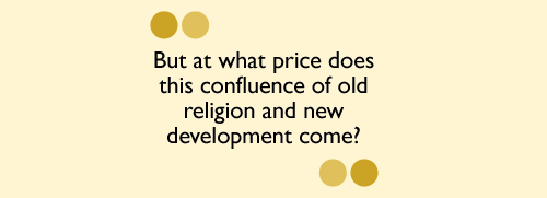 But at what price does this confluence of old religion and new development come? Can we really condemn monks who choose a rather different path than the Buddha’s, especially when they’re surrounded by the physical symptoms of modernity unchecked? What can be expected of these young men, who are understandably struggling to maintain their religious virtuosity in a country that is developing at an almost exponential rate?
