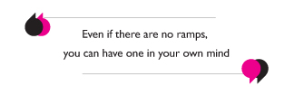 “Accessibility is really about attitude. Even if there are no ramps, you can have one in your own mind – and that is even more powerful than having physical access.”