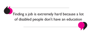 Inaccessibility in school facilities and transportation are some of the most cited deterrents to disabled persons attending school, yet the resulting lack of formal education invariably leads to difficulties in securing employment.