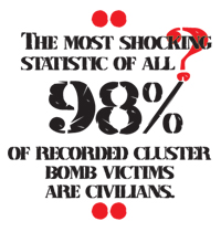 The most shocking statistic of all? According to global aid organisation Handicap International, 98% of recorded cluster bomb victims are civilians. Of these, 27% are children.