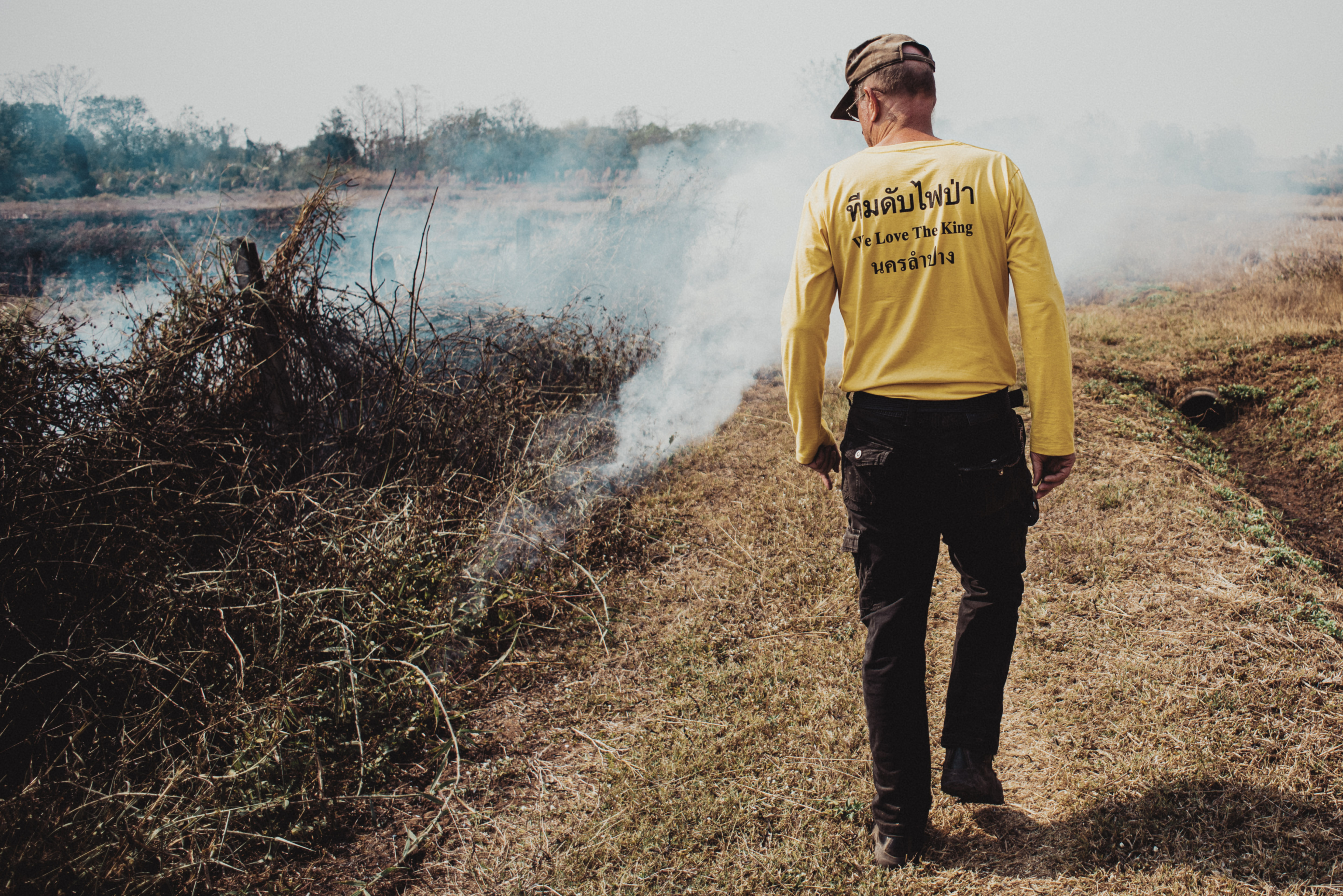 “Firefighting is a way to pay something back to Thailand,” Peter said about his volunteer work, “Nittaya and I have travelled extensively throughout Thailand. We’ve been to so many places and King Bhumibol Adulyadej has been there in the past to benefit the communities and I thought he seemed like a great leader. So, I thought, maybe I could give something back like that, too.” Peter and Nittaya are members of the We Love the King Lampang Group, a group that focuses on preserving the forests of Thailand. There are over 130 members in the Lampang group and Peter and Nittaya joined shortly after moving to Thailand in 2014; the couple’s firefighting and forest preservation work with the group having sparked the attention of the national press in recent years.