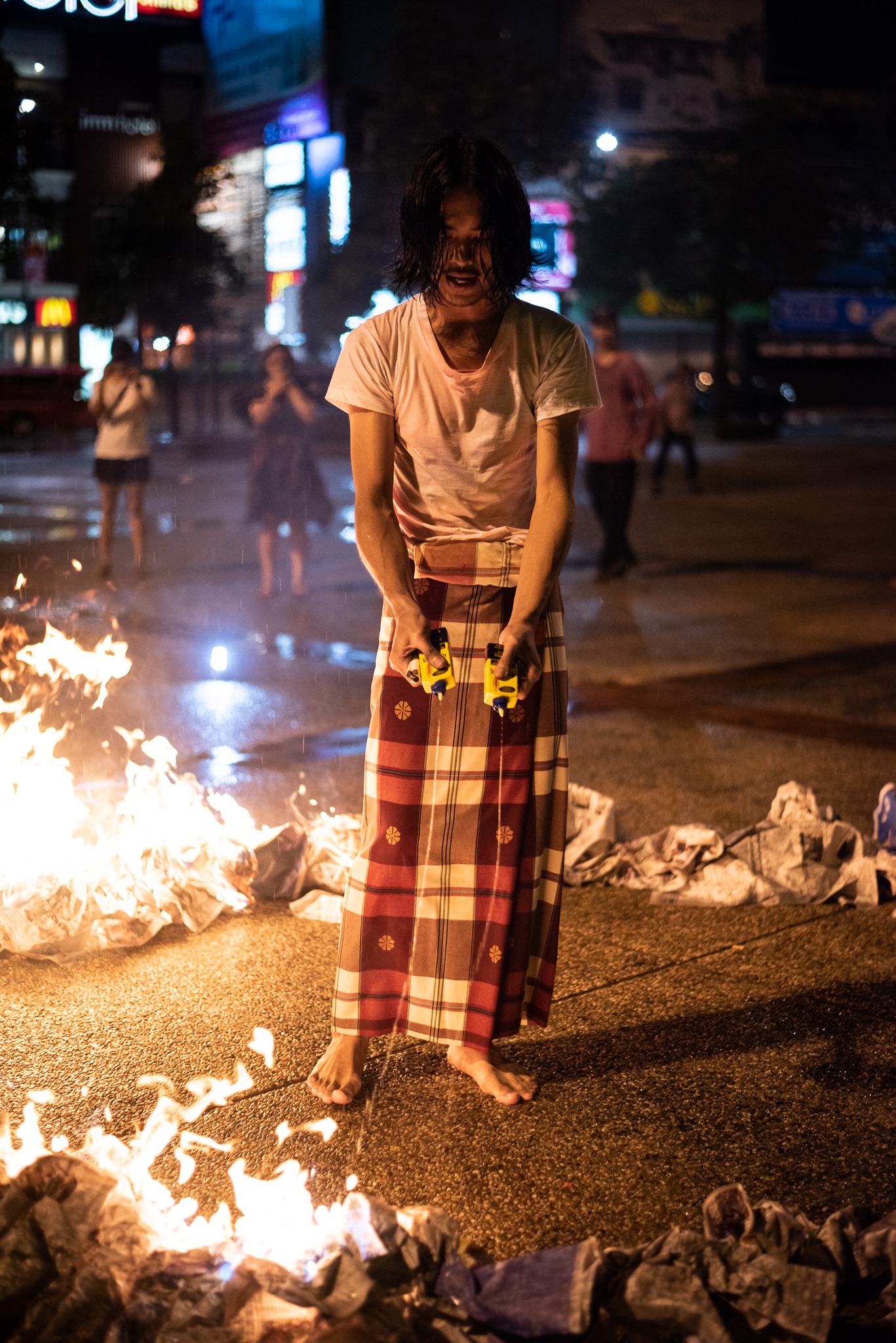 “I come with a friend, we study art together,” said Benz about the performances, “I just want to practice my way to express freedom of speech and action in a public space. As an artist. As a citizen of this country.”
