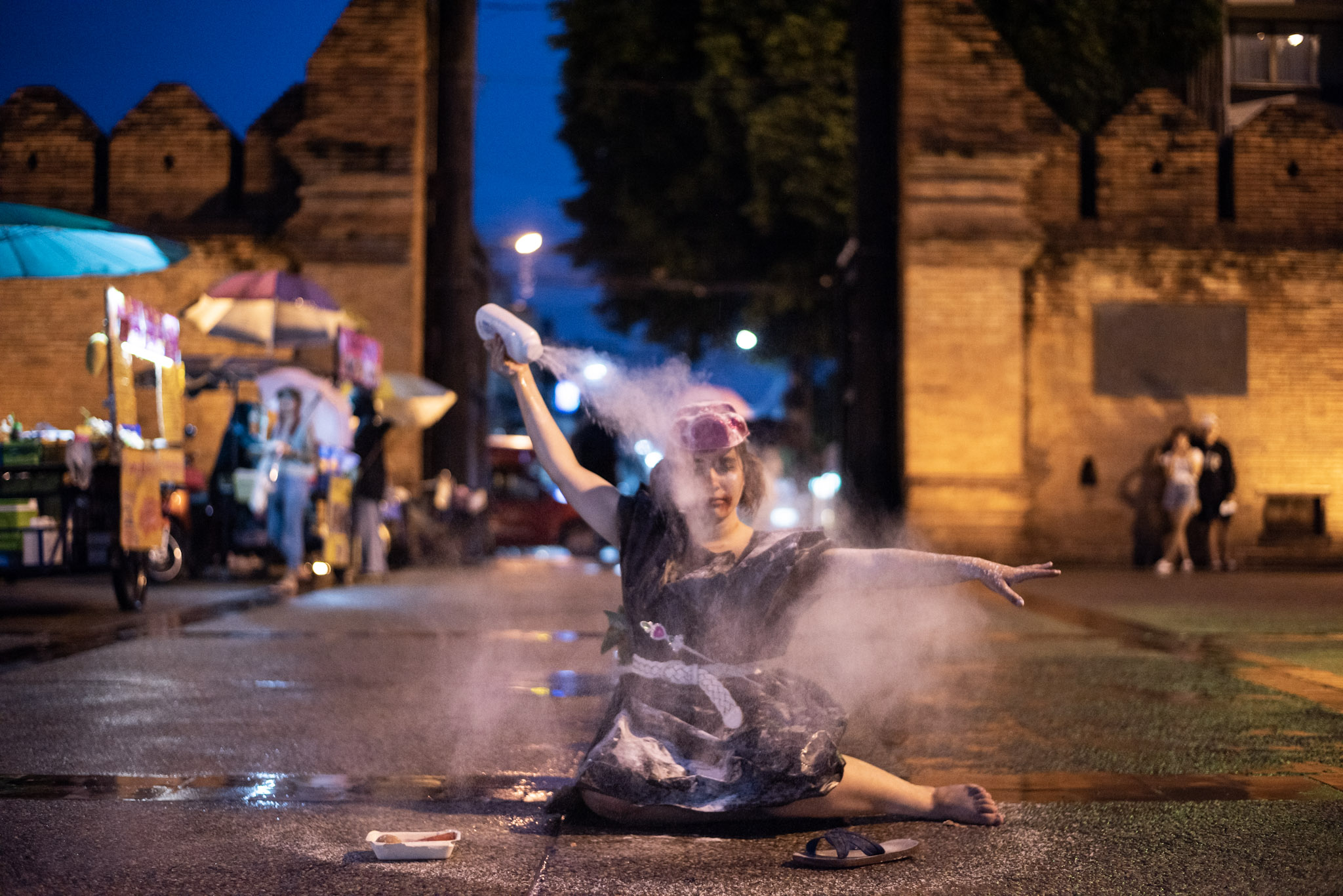 Benz is 22 and Ten is 21 and they are both blossoming Thai performance artists. A slight rain began as we stood under a tree just outside Tha Pae Gate in between performances.