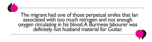 Guitar – yes, as in the musical instrument – was the name of Toi’s niece, who was twenty-one, and had just finished her university education. Ian pulled some strings and got her a job at the golf course in the customer services department. If nothing else, she would be mixing with the right set of people as women often married men from the workplace. There was a secret hope that she might meet a young, rich son of a club member, fall in love, and live happily ever after. The nickname Guitar caused Toi a bit of cultural indigestion. She saw it as yet another trendy Bangkok flutter of butterfly wings that sent ripples washing over and submerging the old Lanna tradition.