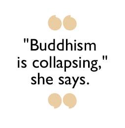 “Buddhism is collapsing,” she says. “It’s the main religion of Thailand but it’s become so separate from the rest of life that it’s not even functional.”