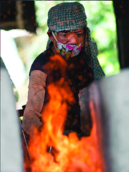 At the Forge It is as if they’ve been summoned telepathically. The three labourers wielding giant sledgehammers stand in unison. Sweat and soot covered, they make their way over to the glowing red blade. On cue, in a synchronised rhythm, they rain down blows on a glowing piece of metal no larger than a classroom ruler. Here in this rural blacksmith, workers make the unique and oddly beautiful machetes used throughout the rural north in the fields, rice paddies, farms and house yards. Taking an almost triangular shape, these blades have a long cutting edge, a dull backside for hammering and a sharp top edge that can be used to pry, cut or slice. It is a wonderfully unique and versatile tool.