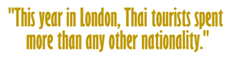 What did the Harrods bag represent? Philosopher Roland Barthes might have called the representation a “second order signification”. The first order being something made from plastic used to carry things in. The second order would be something like, you’re rich, you’re refined, because not only have you been to London, but you’ve bought something in a shop where Britain’s royalty used to buy their Earl Grey tea. Here’s a shocking statistic: according to spending research company Global Blue, this year in London, Thai tourists spent more than any other nationality.