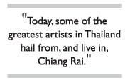 “I don’t think that Chiang Rai is more artistic than anywhere else in Thailand,” she explains. “What has become iconic about Chiang Rai is that the artists are not lost in the development. In other words, while Chiang Mai has more artists than Chiang Rai, they get lost in the jungle of the city. In Chiang Rai, Thawan moved away from his mother’s house near the Wang Come hotel to open an art park on his land ten minutes out of town; Chalermchai and Somluck also moved out of town. People therefore go to these artists as a destination, making them visible and constantly relevant. These individuals are so respected and admired by the people of Chiang Rai, who are proud of their successes, that they also found themselves influencing change. People identify with the artists and this makes art significant to the people of Chiang Rai. Their leadership also helped Chiang Rai to avoid some of the tourism and development mistakes Chiang Mai made, so the art in Chiang Rai has not become eclipsed by development.”