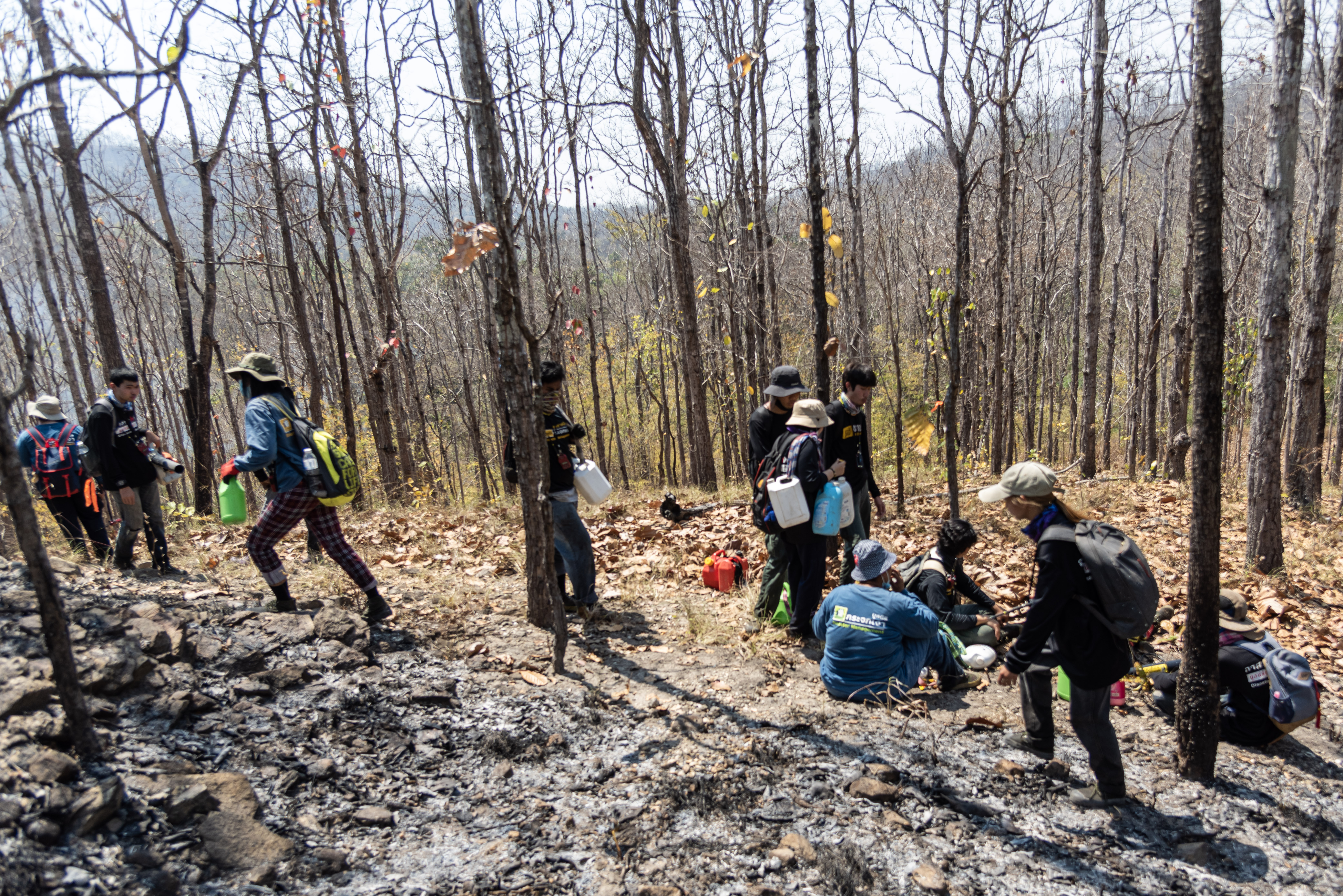 Smaller local government forest fire control teams fight the fires as best they can but due to limited resources, they need help. These local teams work very hard at fire control but Mirror has been a big ally. Mirror helps local teams with drone support and manpower in the form of leaf blowing fire breaks and carrying water to the front lines of the fires. Each day begins by locating Chiang Mai region hot spots, packing Red Trucks with volunteers and then working toward controlling the massive fires. Each day brings its own challenges.