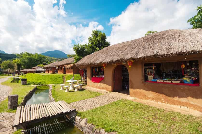Further out, you can visit Baan Santichon, or the “Yunnan Cultural Village.” Clay houses line this hilly viewpoint, offering tea, souvenirs, and traditional Chinese dress rentals. While the Great Wall recreation here may not be visible from outer space — nor on Google Maps — it is a family-friendly outing for archery, pony rides, and of course, Instagram photos.