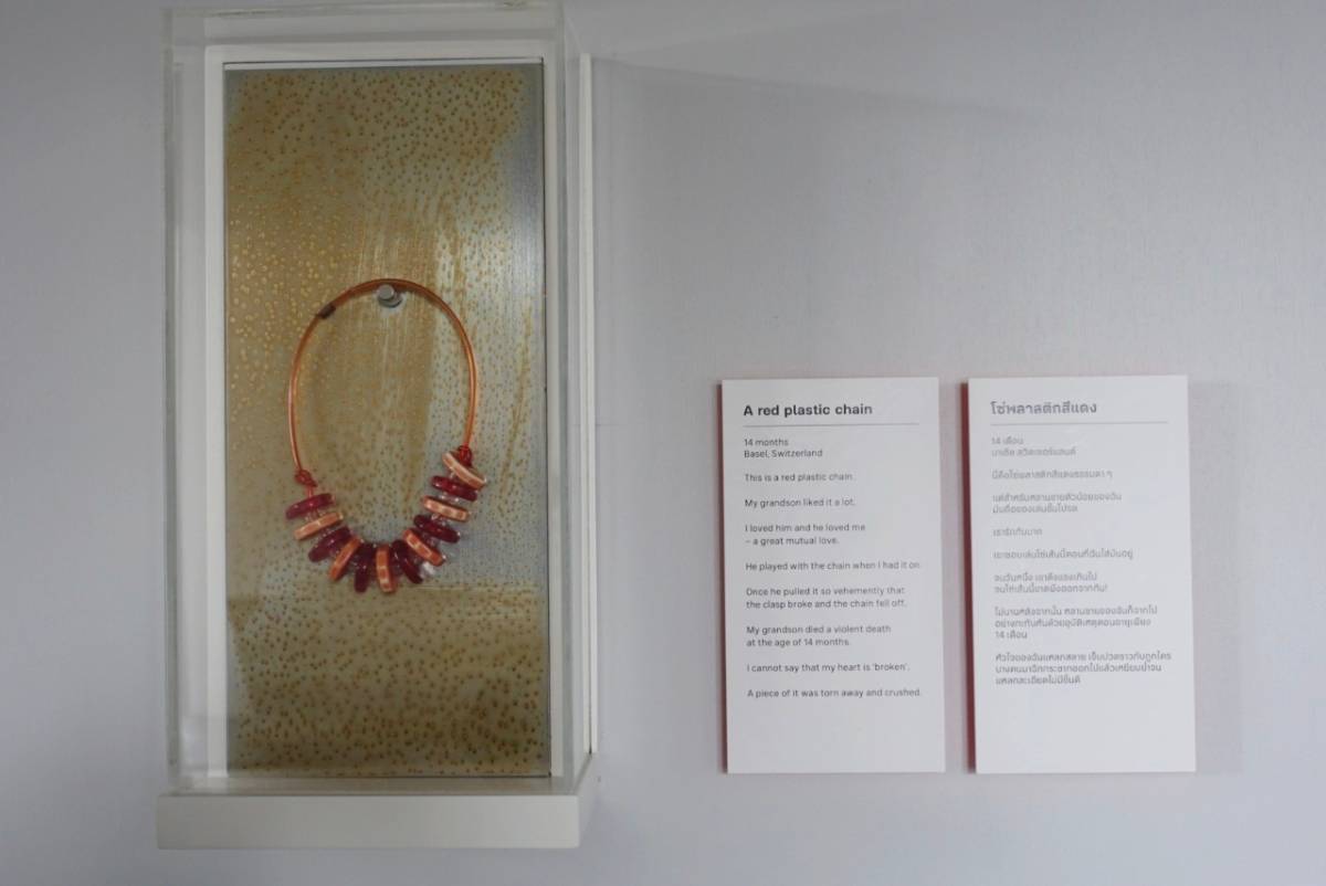Walk into the museum, pay your 200 baht, and you are taken on an emotional journey, of what initially appears to be unconsidered trifles: here an oriental teacup, there an x-ray of a broken shoulder; here a wooden flamingo; there an empty bottle. All inconsequential until you stop to read the short text next to it. And realise the deep meaning these items have for their previous owners.