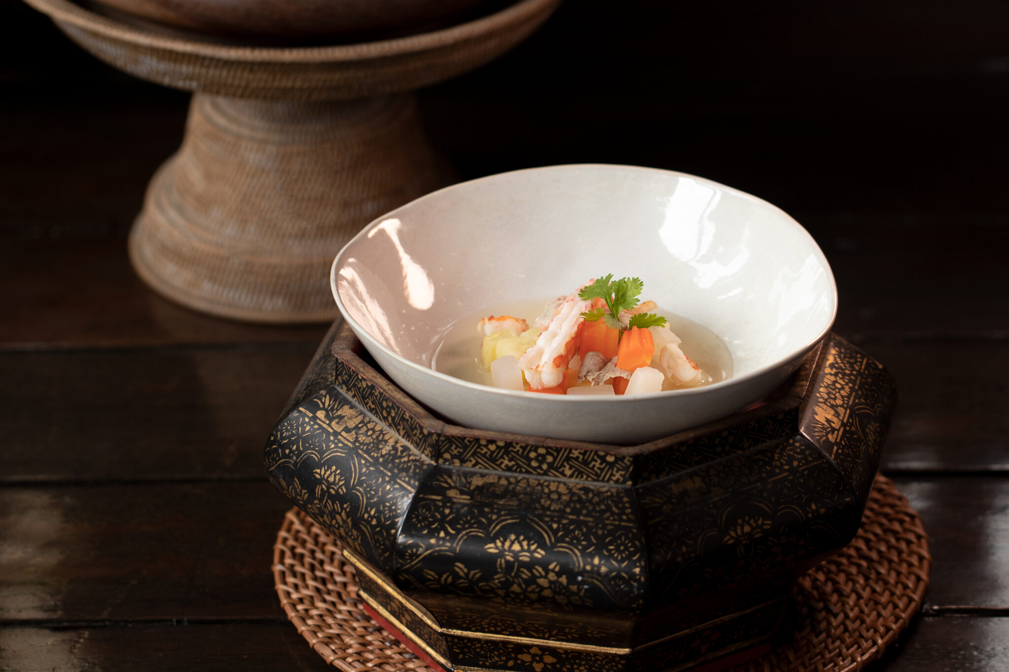 Within the historic teak walls of 137 Pillars House, many stories have gently faded with time, including the cuisine once enjoyed here. Inspired by the era of King Rama V—when Thai traditions met global influences—this menu reimagines royal recipes and early Thai-European flavours that may once have graced these very tables.