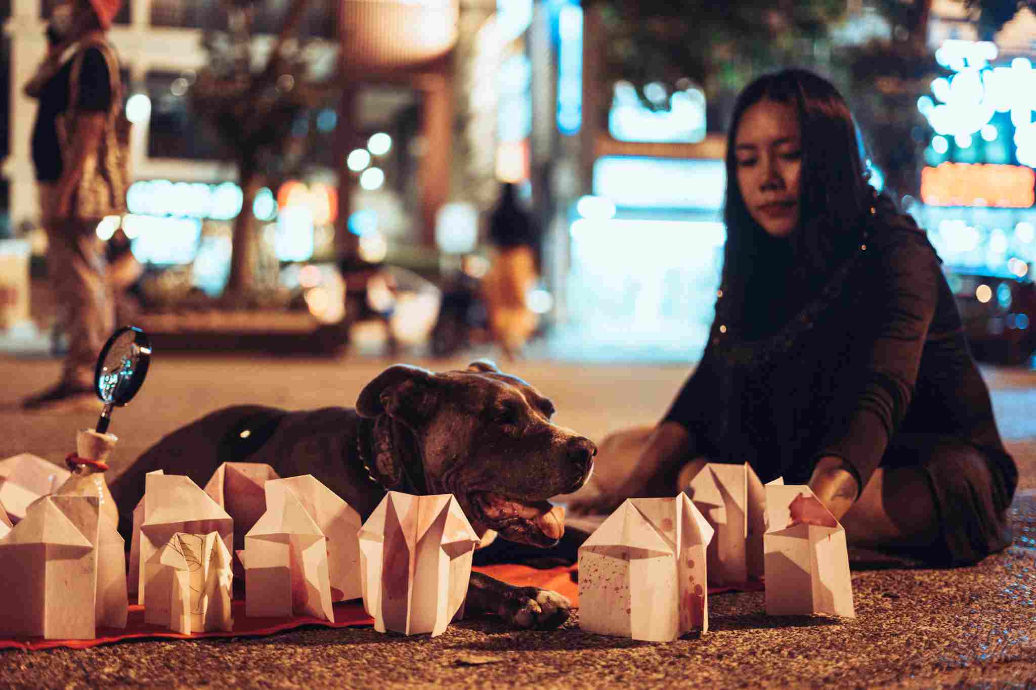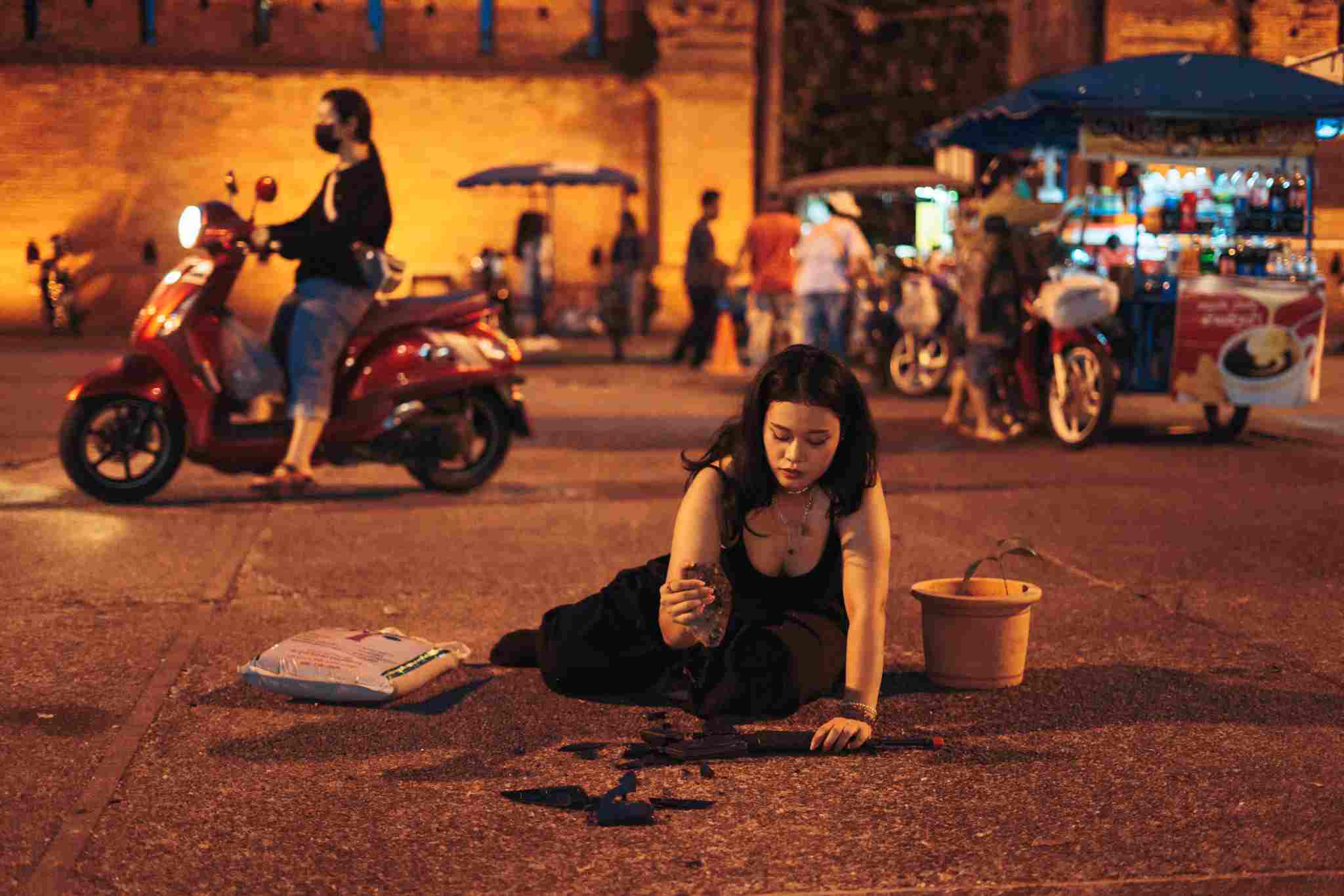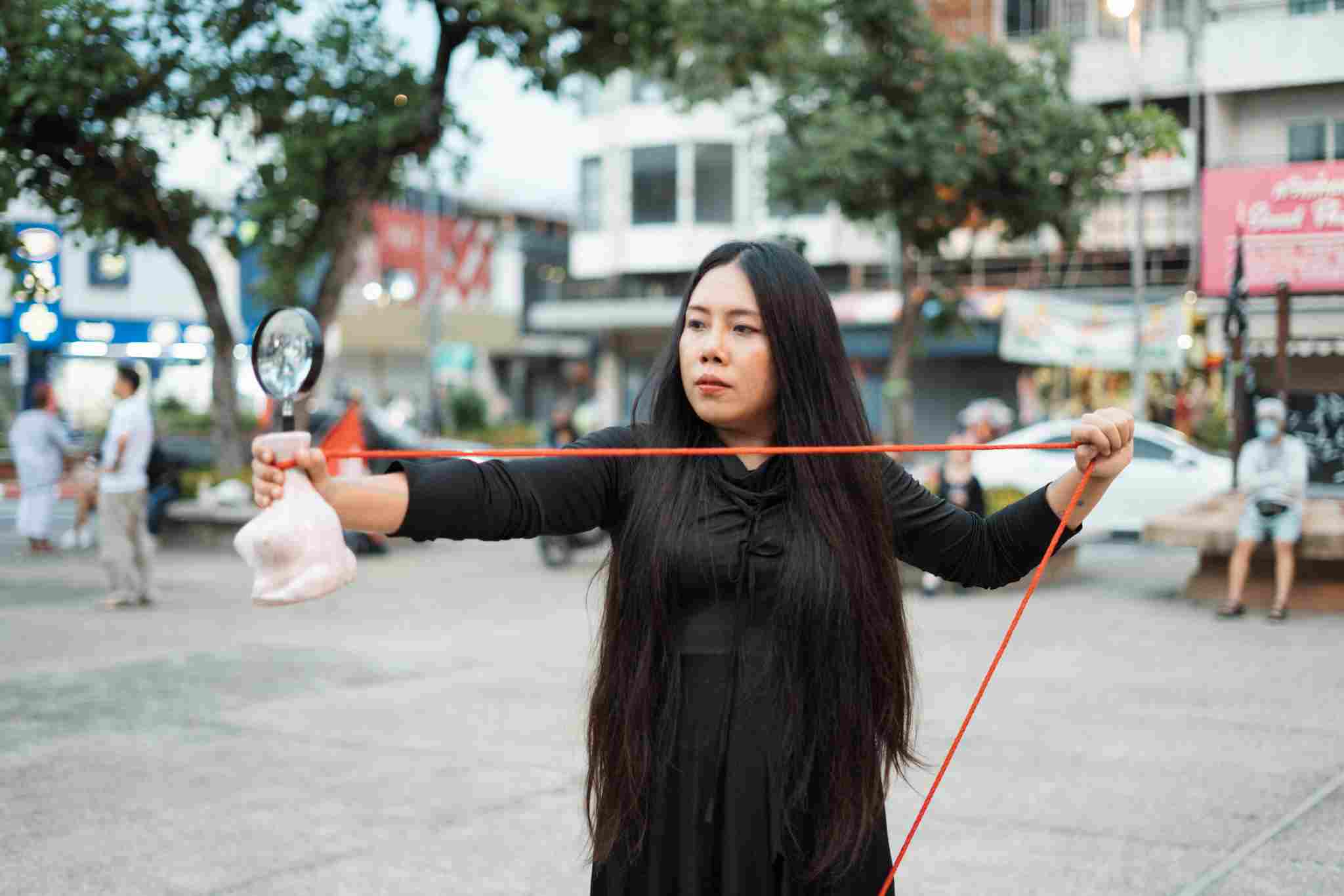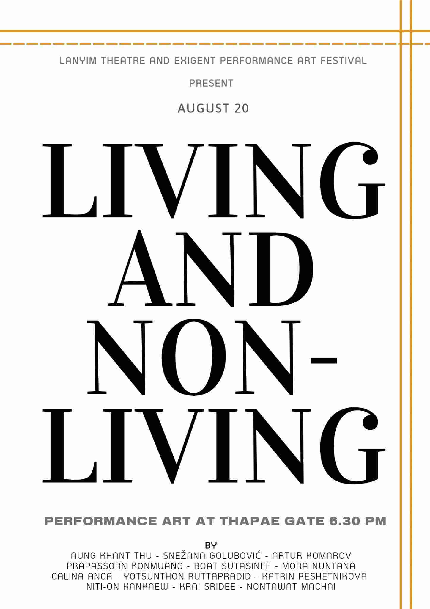 Nontawat and the other Lanyim performers named the event ‘LIVING AND NONLIVING’. The event ran from 6:30pm to 8pm and featured over 12 artists. “This show is to communicate with everyone that we must not remain silent about killing all forms of people,” said Nontawat about the performance, “ Our show is Presented by Lanyim Theater, Exigent Performance Art Festival, and our artist’s friends from Germany, Romania, Russia, Myanmar, and Thailand.”