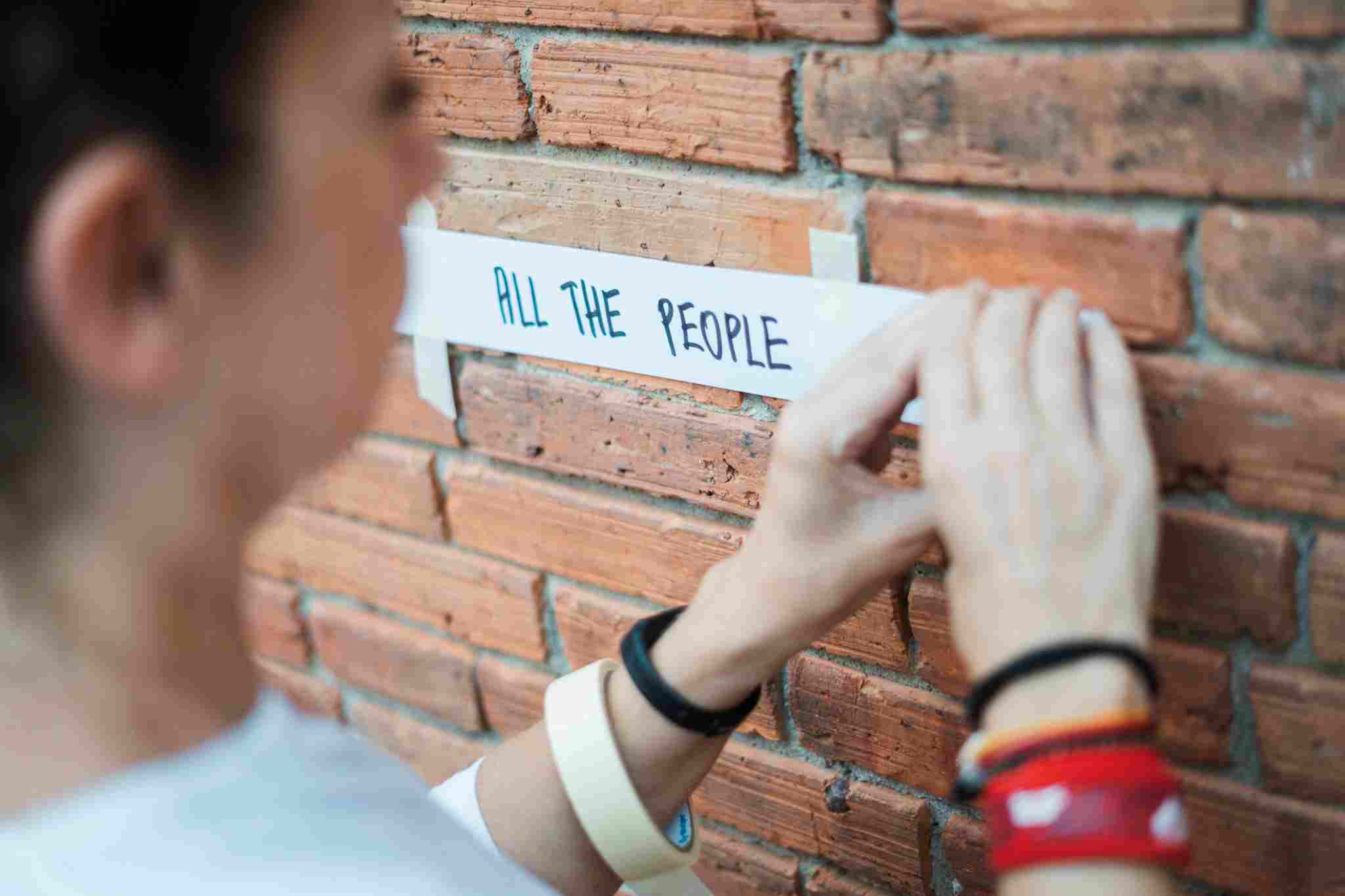 The event attracted many locals and tourists as they passed by the Gate. One performer broke a plastic gun and then urinated on it. Another performer wore a fake bomb on his head and detonated it hurling confeti into the air. Other performers taped messages to the gate wall and waved protest flags while wearing Anonymous masks. People passing by the acts filmed and photographed the graphic demonstration and stood in amazement.