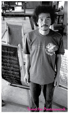 at CMU, worked in dramatic arts at Thammasart University and also worked in the theatre during my stay in France.” On his return to Thailand, Kamron revived the Crescent Moon Theatre and became involved in documentaries and political TV programmes in the eighties. His latest achievement has been a film, ‘Once, A Pond, A Time’. “Oriental magical realism,” he tells me, “a coming of age film about two boys in the north of Thailand during the Vietnam war period.” At the Nantes Film Festival in France his film proposal was voted best out of twenty international entries by producers, writers and directors. He hopes the film will be finished in the next three years. Talking about Thai cinema he says, “It’s a bad assumption that a movie has to be soft or light, you can touch the audience in many ways.” On censorship Kamron explains, “If I know the rules of the road I can cross that road, I can use metaphor, create a vision that censorship will not understand; the audience can interpret it how they want.”