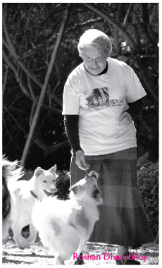 Roshan meets us at the gates to her house, she’s followed by a gang of canine oddities, one is a tripod, one old fella has lost his bark – he tries but only a faint coughing sound can be heard _ another is gummy and has a twisted limb. Roshan has helped rescue them all from certain death. Born in India, the daughter of a psychiatrist, she saw and understood the iniquities of the world when very young.