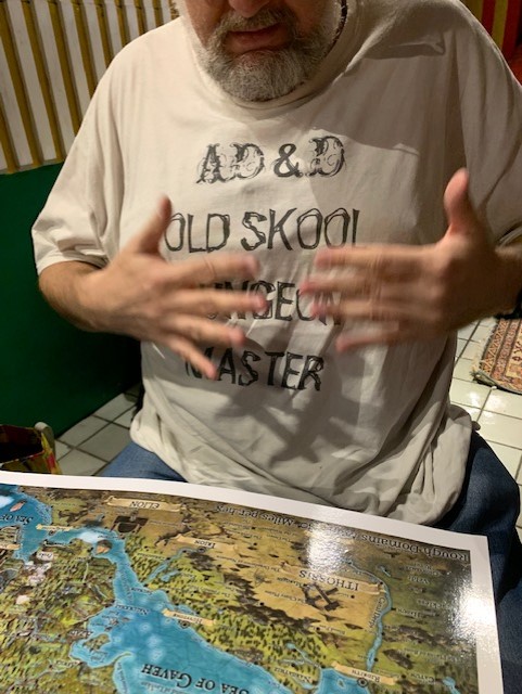 The next Tuesday we met Jim Jenkins. Jim in a Dragon Master…I believe that’s what they are called. He started playing Dungeons and Dragons right at its inception all those decades ago and has been a fanatic Dungeoner (is that what they are called?) ever since. In fact, he has a full time career online hosting Dungeons and Dragons.